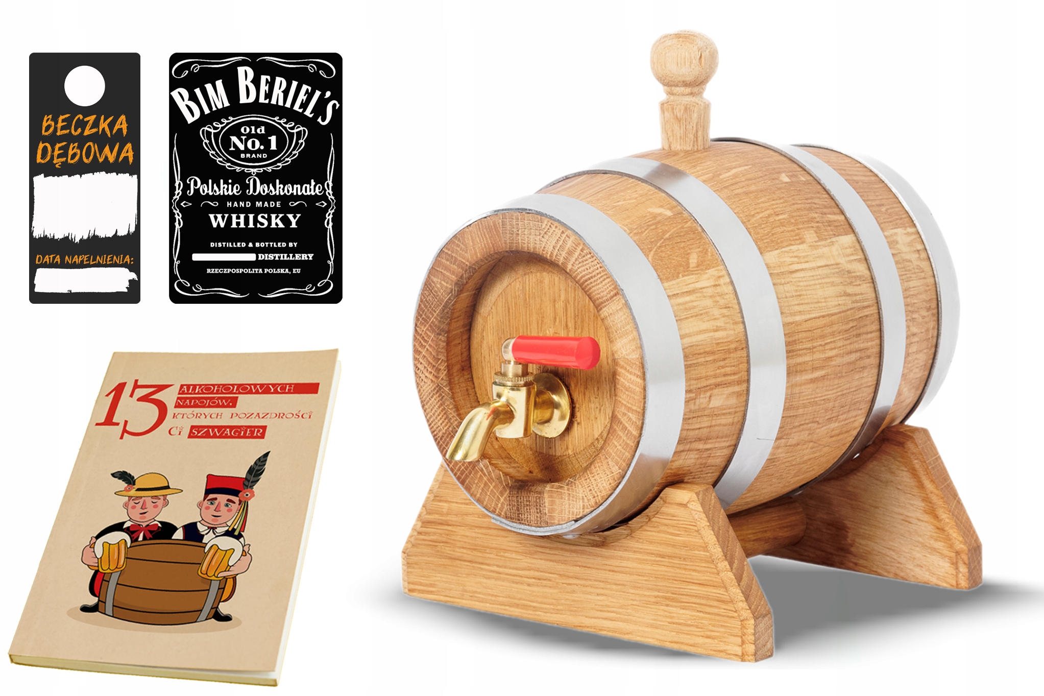 - Бочка має латунний кран, який дозволяє легко наливати напій.