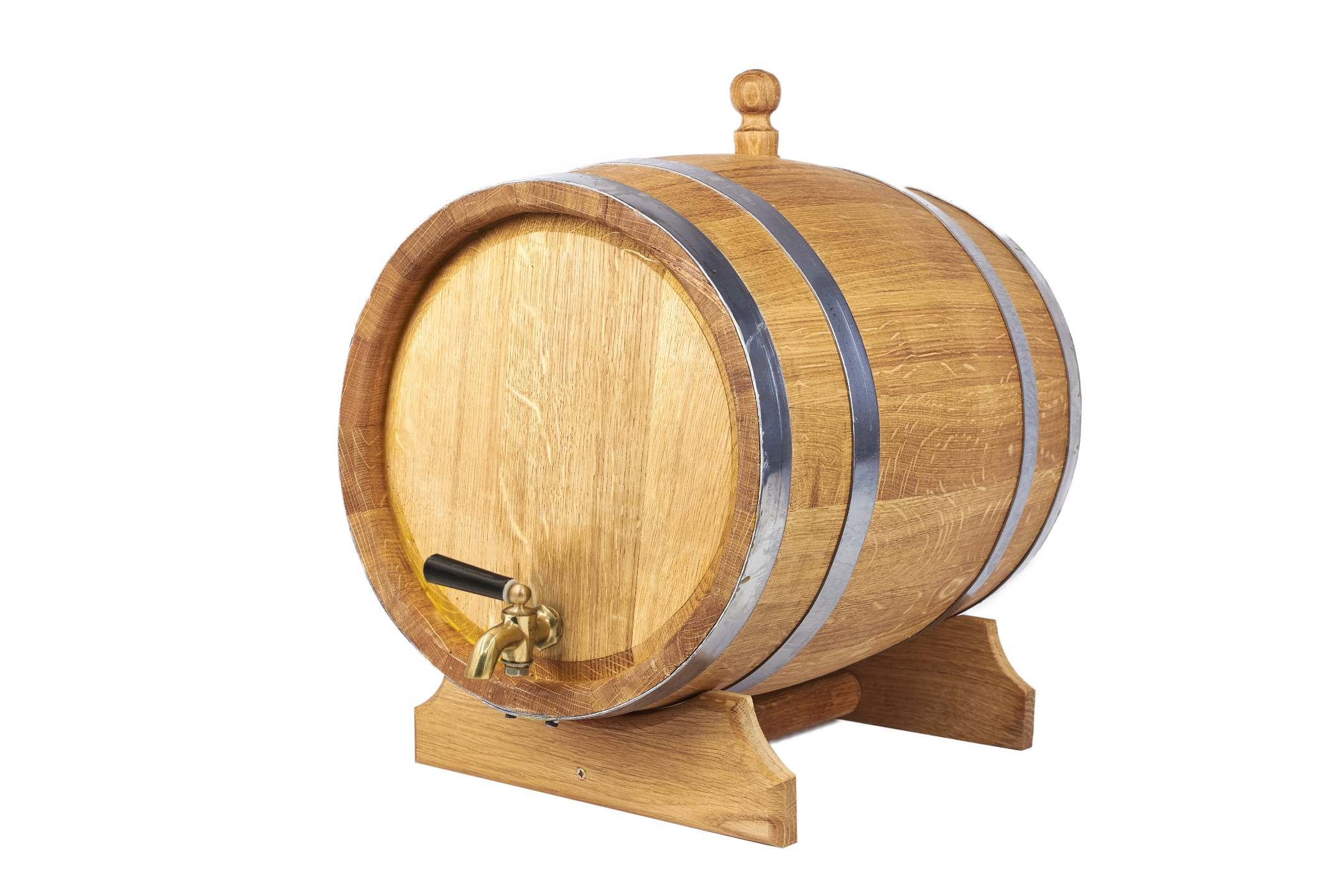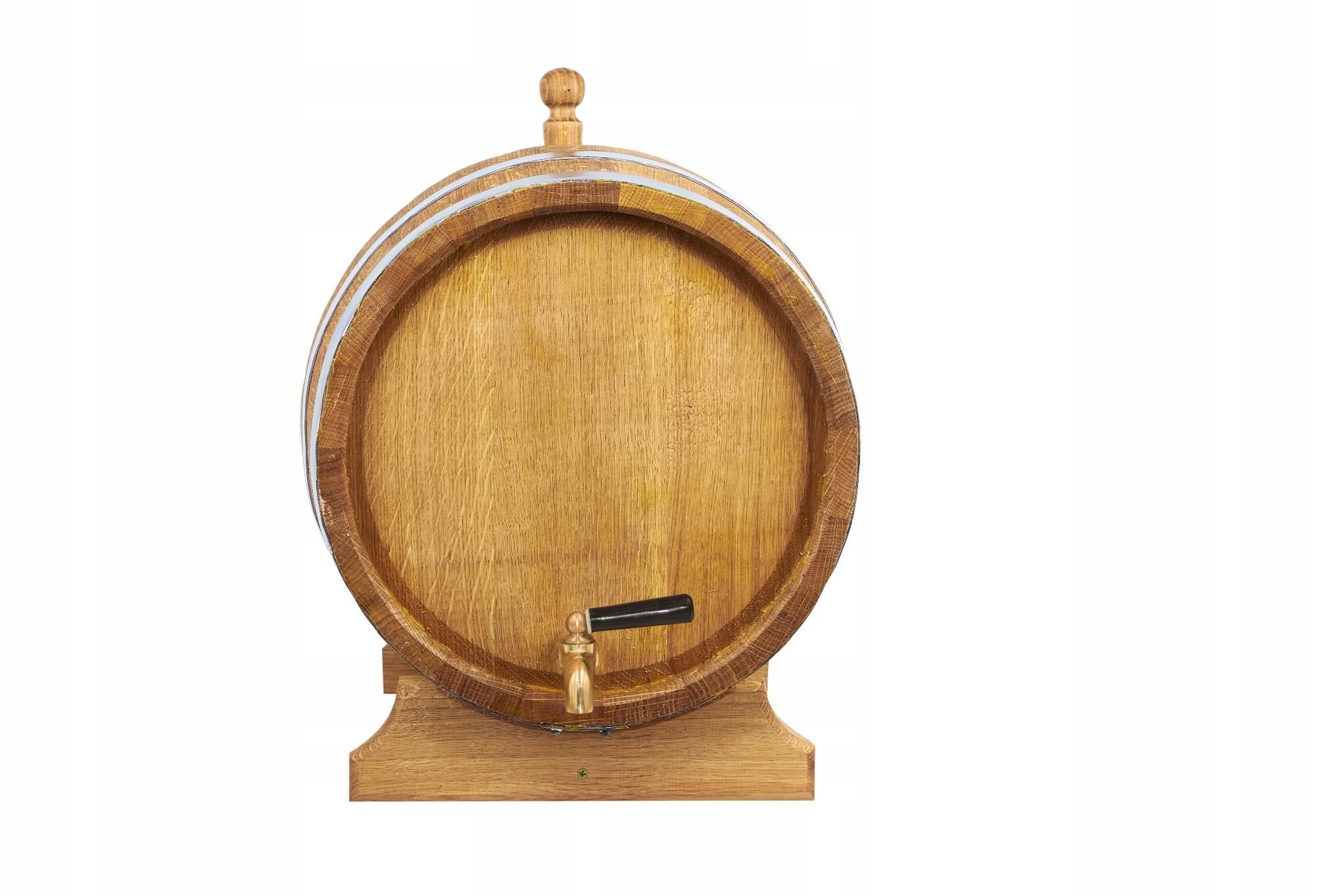 - Бочка має латунний кран, який дозволяє легко наливати напій.