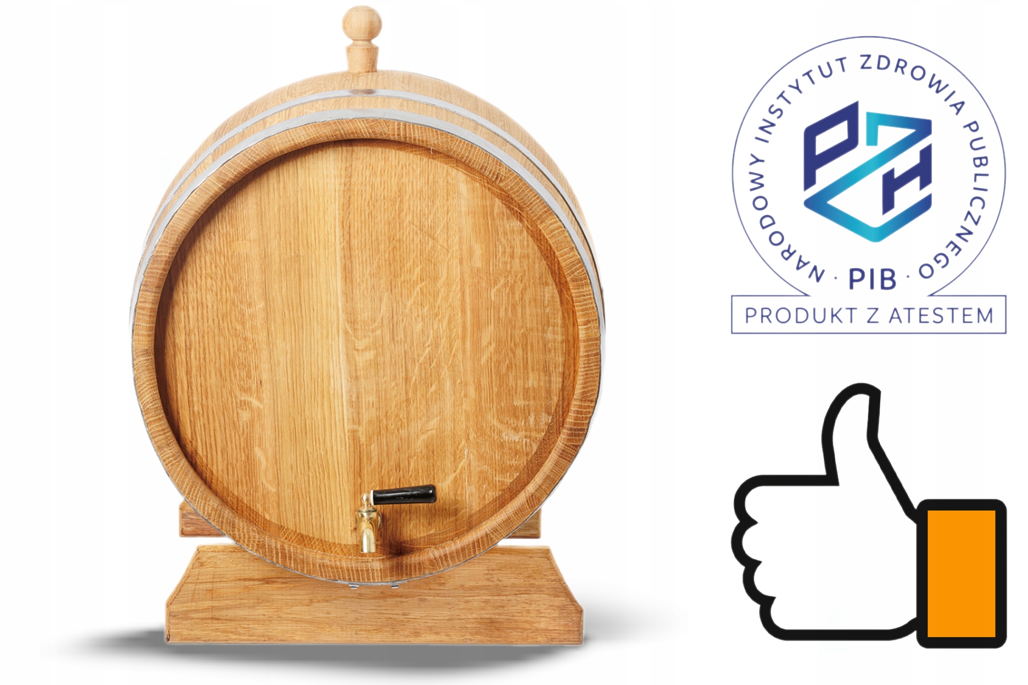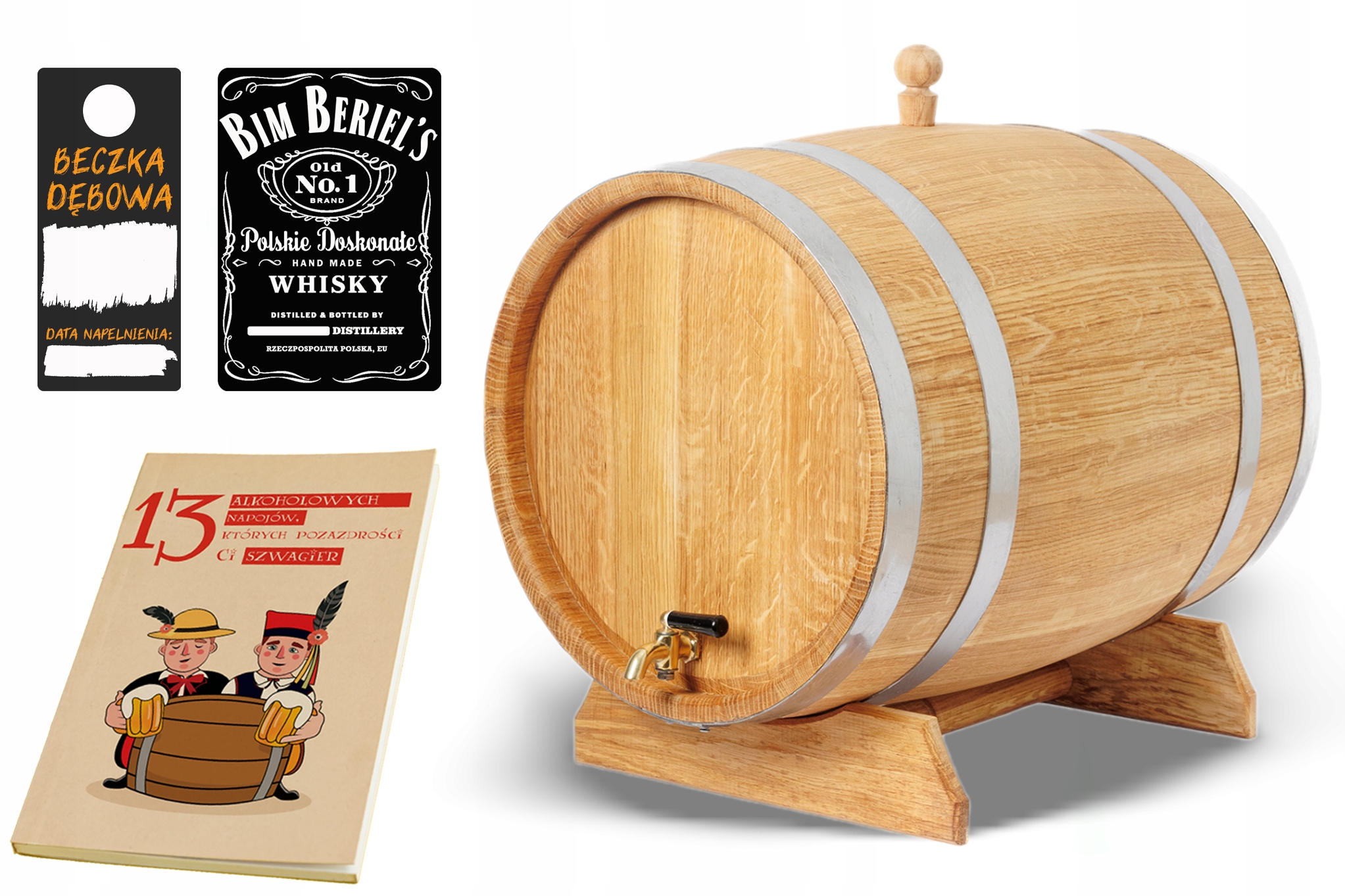- При замовленні бочки ви також отримуєте пробку та дерев'яну підставку, завдяки чому виріб буде чудово виглядати як доповнення до вашої квартири.