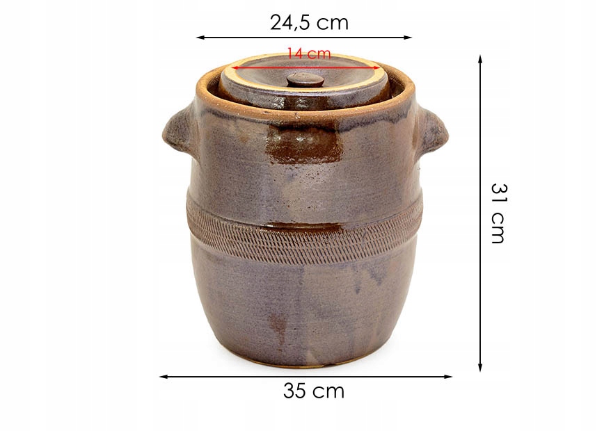 Універсальна і непідвладна часу бочка з кераміки з кришкою дозволяє готувати здорову домашню консервацію та тривале зберігання продуктів. Бочка повністю безпечна для здоров'я і придатна для контакту з харчовими продуктами. Завдяки глазурному покриттю не вбирає запахи, забезпечуючи натуральний смак цінних інгредієнтів готової консервації. Керамічний посуд призначений, наприклад, для соління огірків, капусти або приготування закваски для житнього супу без використання консервантів.