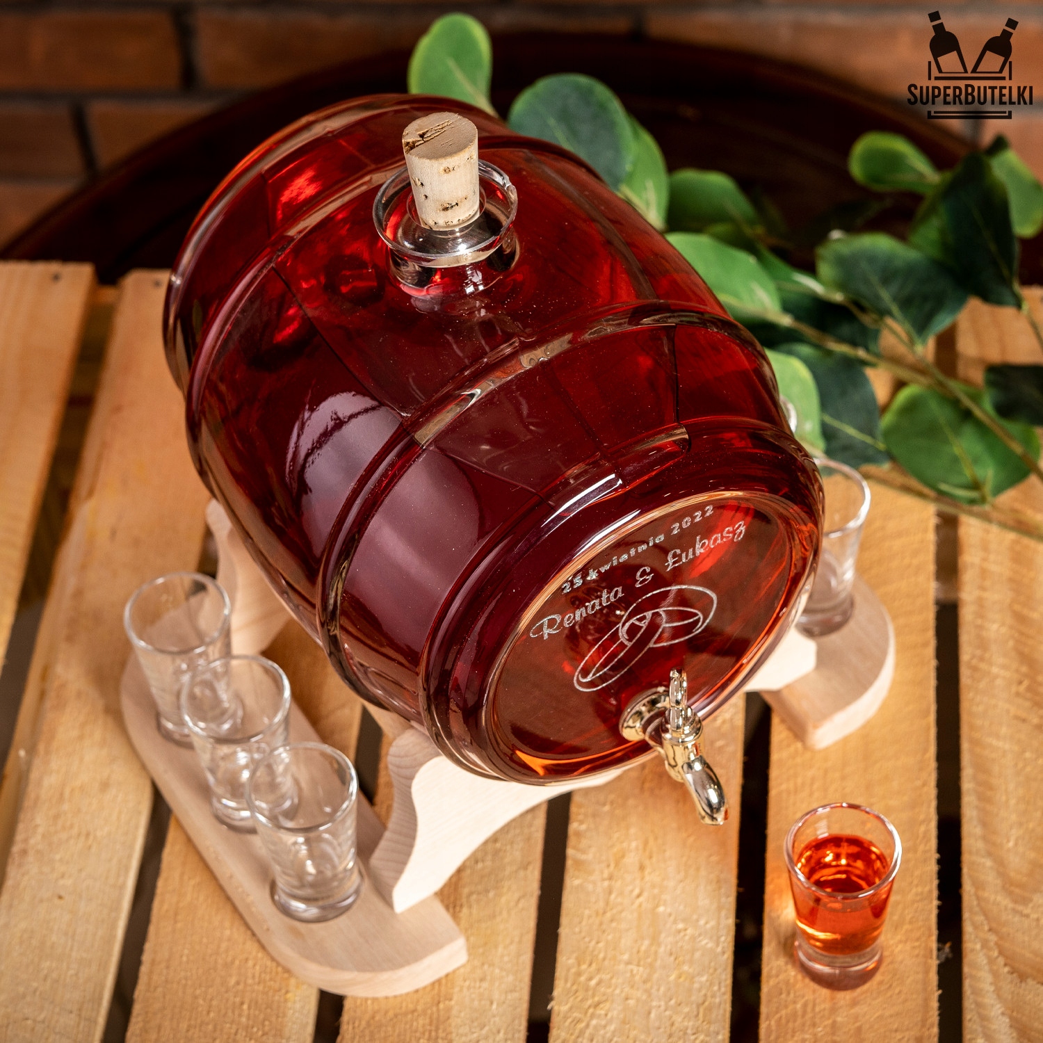 СКЛЯНА БОЧКА 4Л НА ПОДАРУНОК НА ВЕСІЛЛЯ НА ДЕНЬ НАРОДЖЕННЯ БІМБЕР НАБІР ОКАЛІВ З ГРАВІЮВАННЯМ