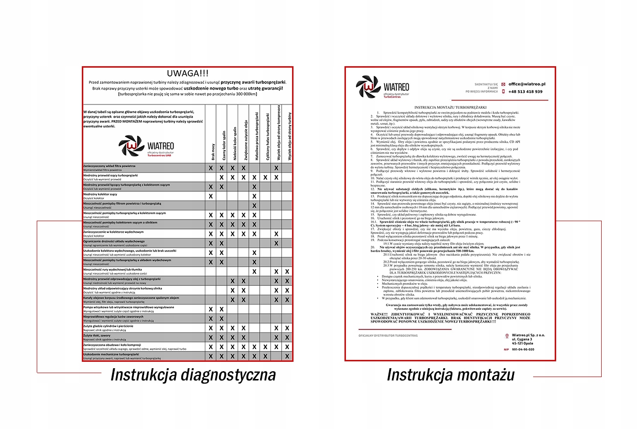 Ми включаємо 2 посібники з кожним пакетом: посібник з діагностики та посібник із встановлення турбокомпресора. При правильному виконанні всіх пунктів ми гарантуємо довговічність і тривале використання турбіни.