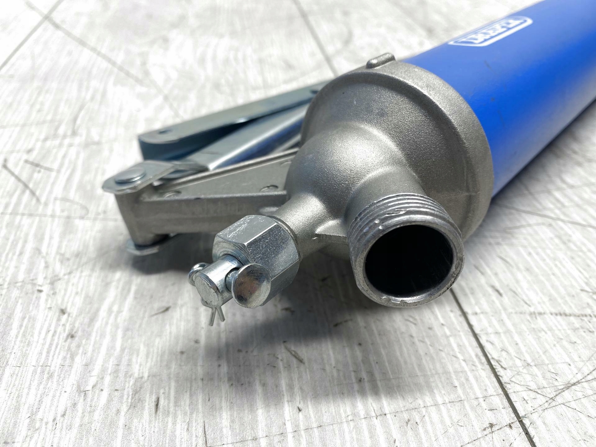 для використання зі сталевими бочками потужністю максимум від 50 до 250 літрів. Алюмінієвий тиск литий і пробковий гайка з оцинкованим вигнутим випускним носком діаметром 19,5 мм та ручкою важеля. Для використання лише з масляними рідинами.