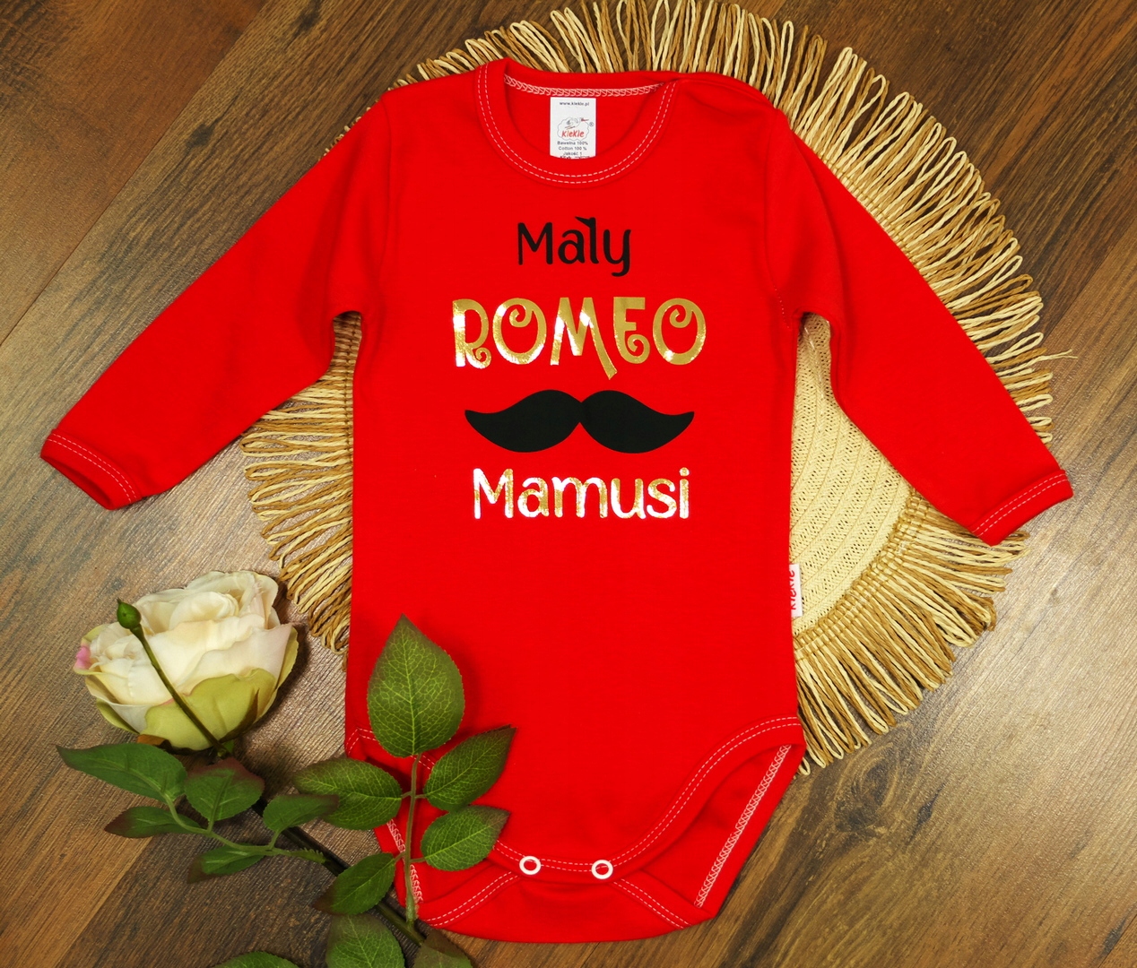 ВЗІЗОК: МАМИН МАЛЕНЬКИЙ ROMEO (золоті елементи) на ЧЕРВОНОМУ боді