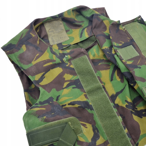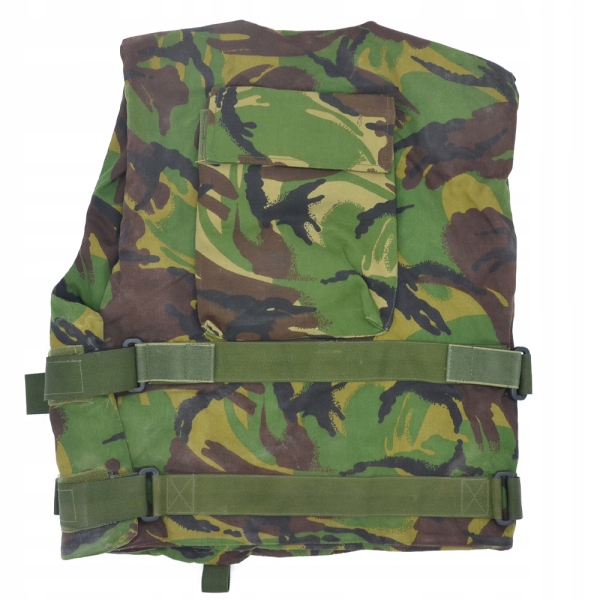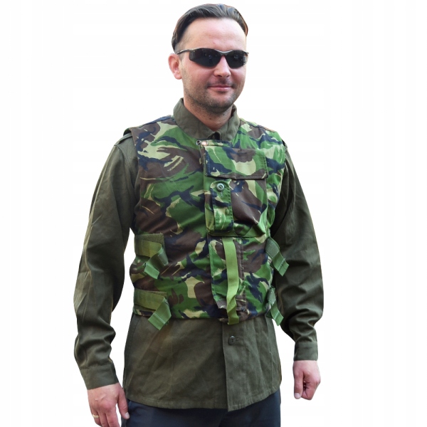 Оригінальний жилет із засобів британської армії. Виріб виконано в лісовому камуфляжі DPM. Виріб регулюється по талії за допомогою липучок. Жилетка застібається по всій довжині на суцільну липучку. Має одну нагрудну кишеню, що застібається на липучку. Жилет не має балістичної вставки.