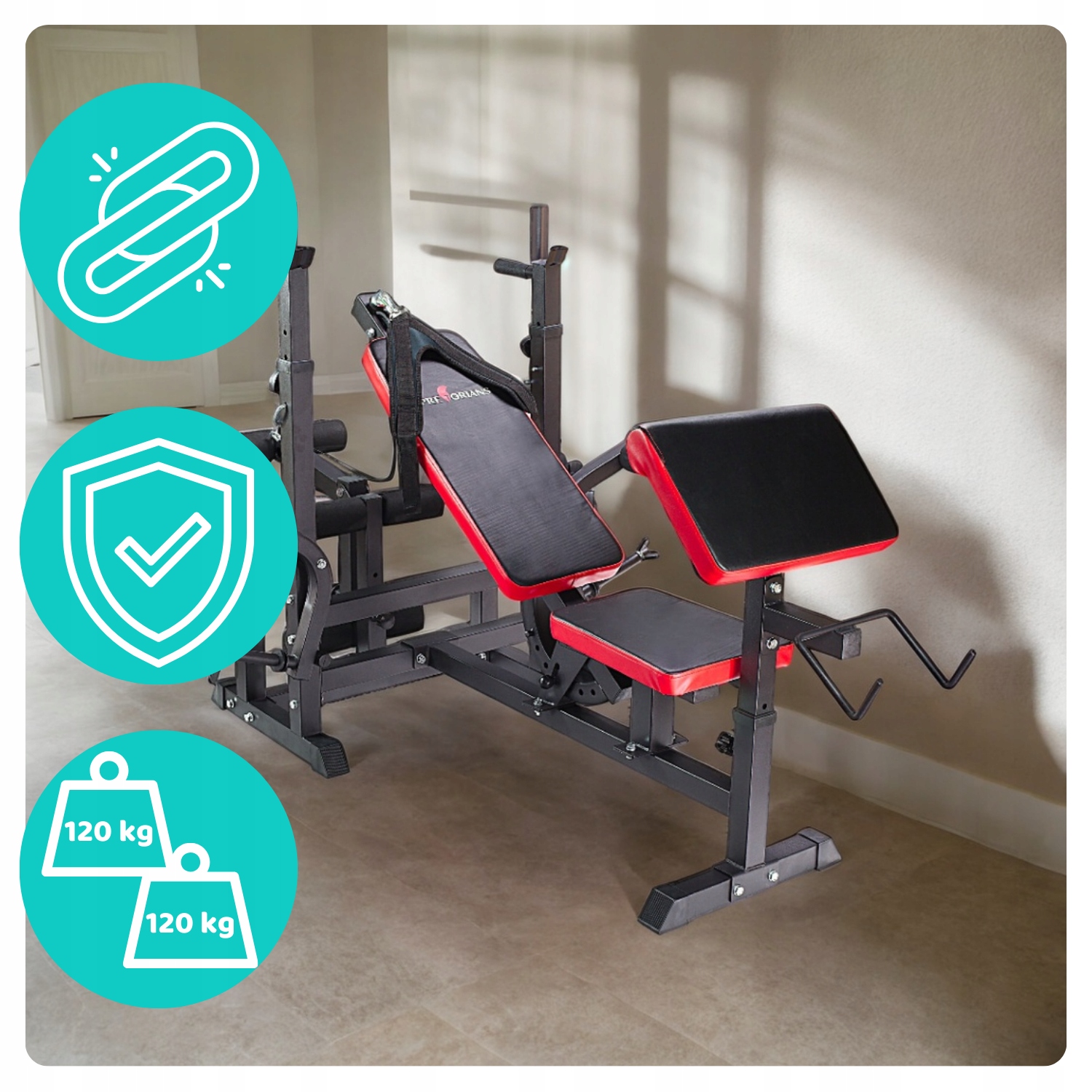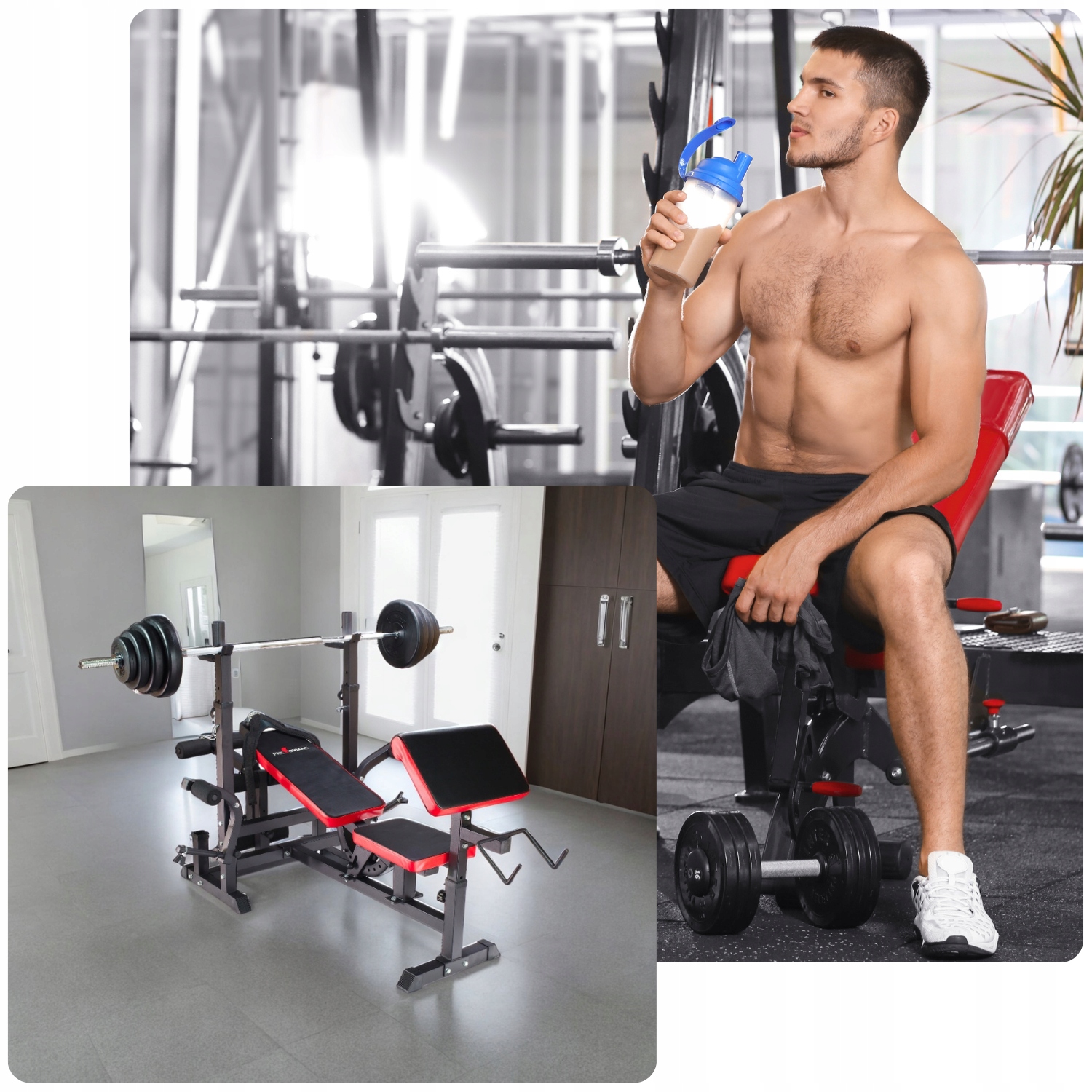 У наборі ви знайдете регульовану лавку з молитовною книгою , gryfy і набір навантаження , що дозволяє тренувати все тіло - від клітки, через спину та плечі, до ніг і біцепсів.