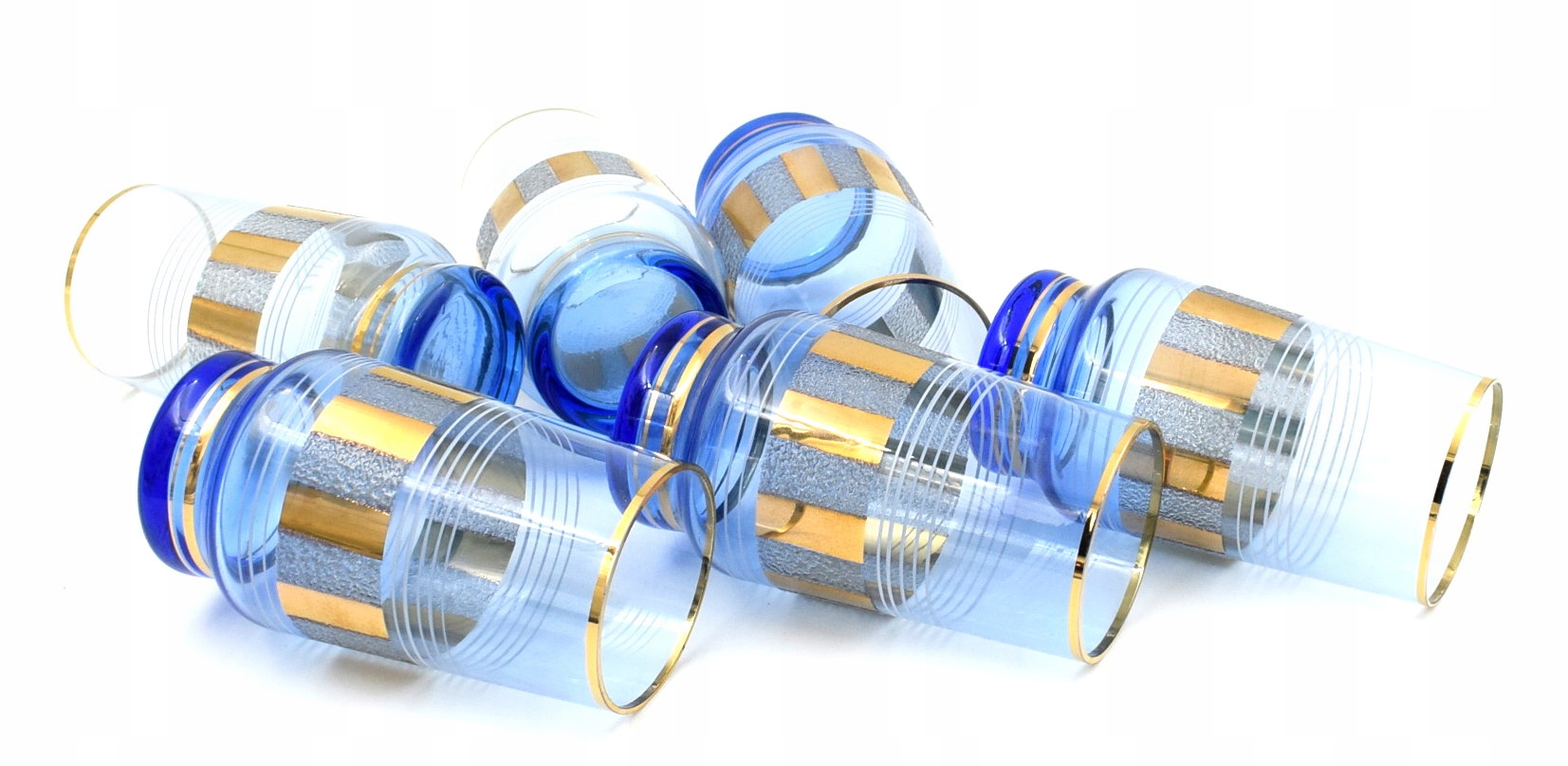 Прекрасні старовинні келихи синього кобальту - виготовлені з кришталю - прикрашені позолотою та рясною позолотою. Абсолютні ювелірні вироби, 6 шт.