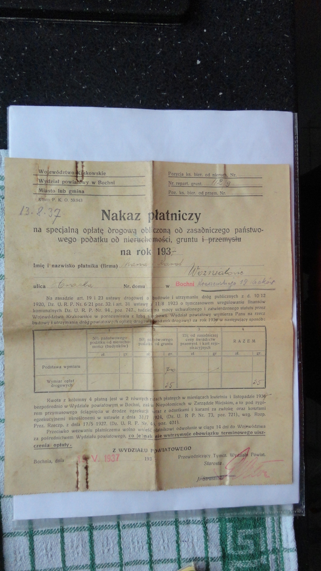 БОХНЯ ПЛАТІЖНЕ ДОРОВЕННЯ ДОРОЖНИЙ ПИТАННЯ 1937 СТАРОСТ СТРУСІНСЬКИЙ