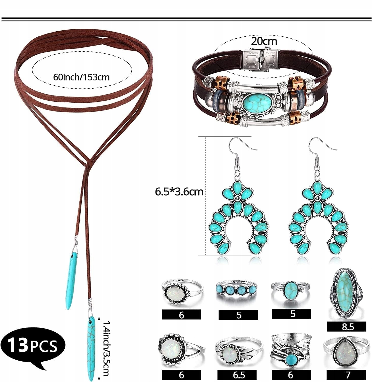 БОХО ВІНТАЖНИЙ НАБІР ШКІРЯНИХ ПРИКРАС БІРЮЗОВА СУКНЯ ХІПІ 12 предметів