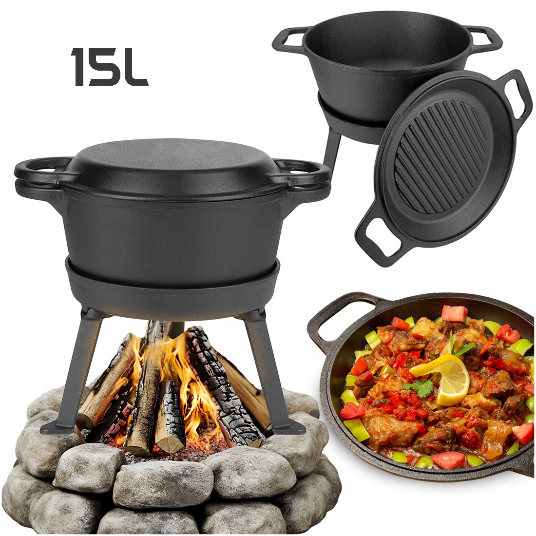БОЙЛЕР 15Л ЧАВУННИЙ 3в1 МИСЛИВСЬКА КАСТРУЛЯ СКОВОРОДА ПІДСТАВКА ПРАЖОНКИ МАНГАЛ