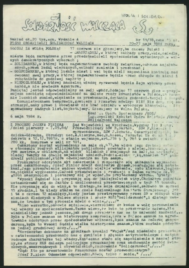 Бойова солідарність 1984 №. 11 / Вроцлав