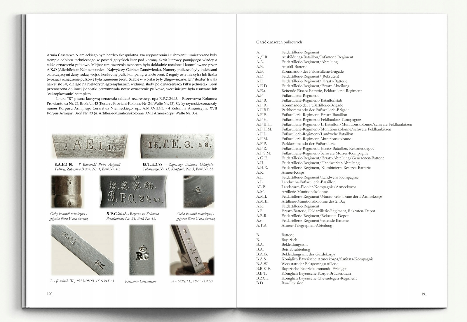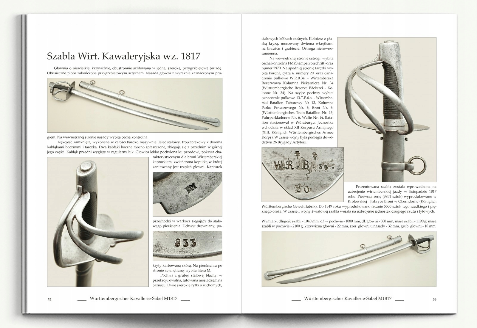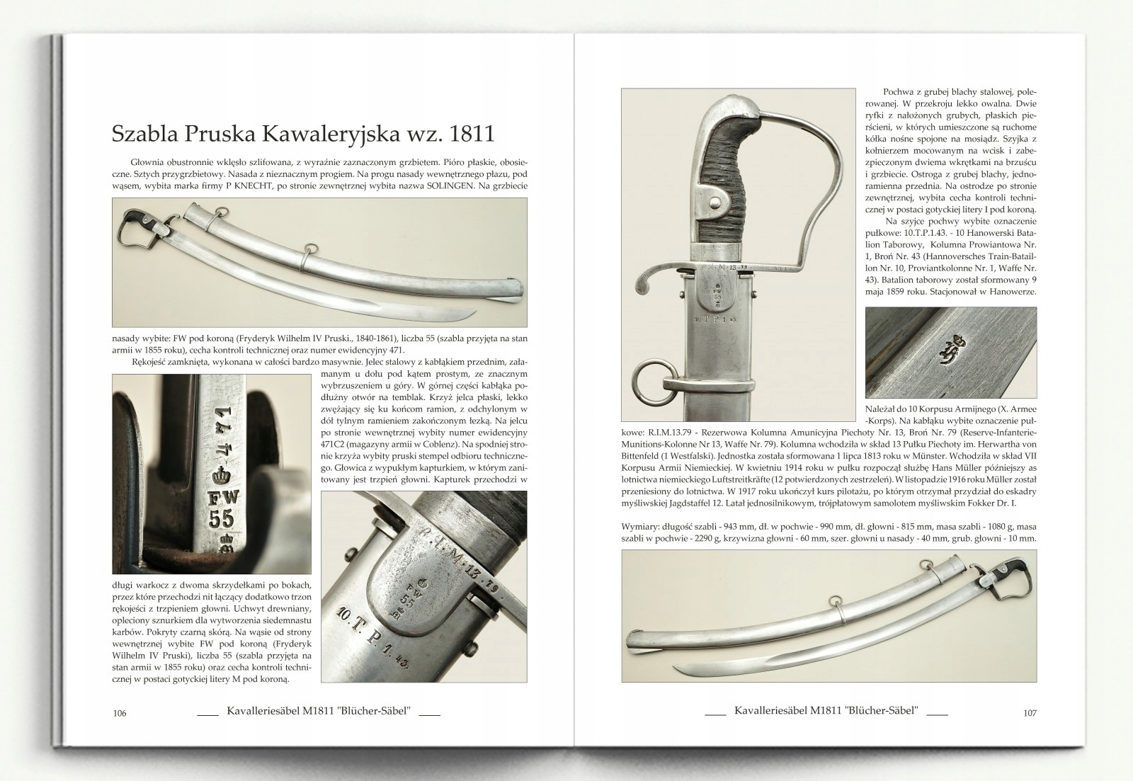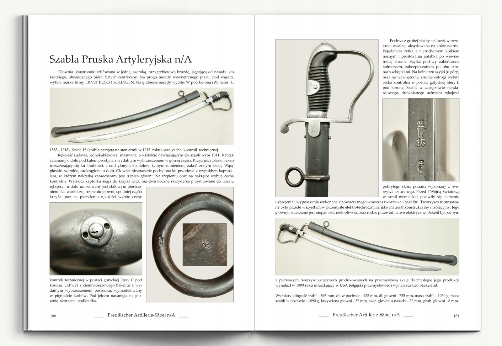 Першою описаною шаблею є прусська гусарська модель 1742 року, випуск і закінчується артилерійською шаблею, виготовленою наприкінці Великої війни. Особливу увагу автор приділив полковим знакам, завдяки яким ми можемо отримати багато цінної інформації про даний підрозділ, його бойовий шлях тощо.