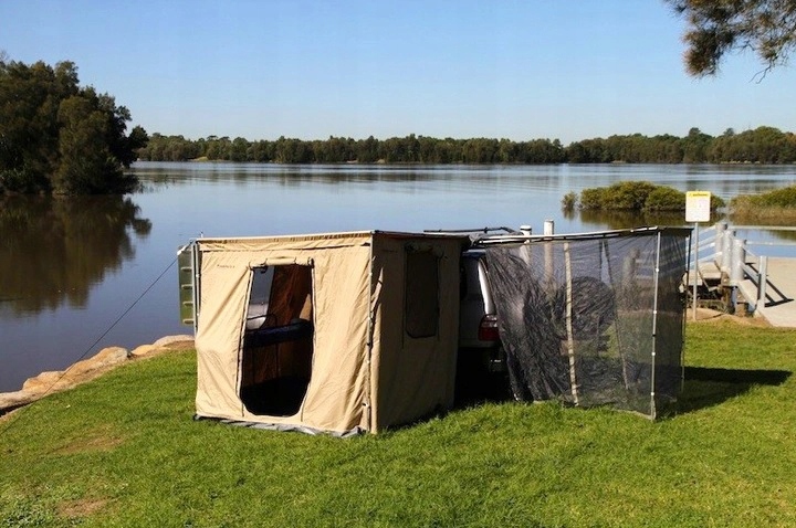 - Входи в намет і автомобіль (оснащений захисною сіткою) закриваються на блискавку.