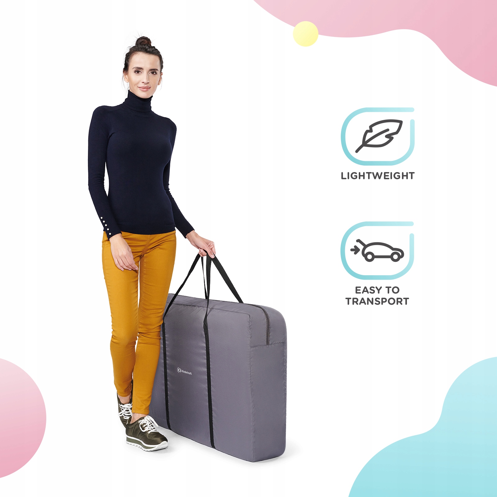 - У комплект входить транспортна сумка, яка полегшує перенесення ліжечка. NESTE AIR буде супроводжувати вас навіть під час відпустки