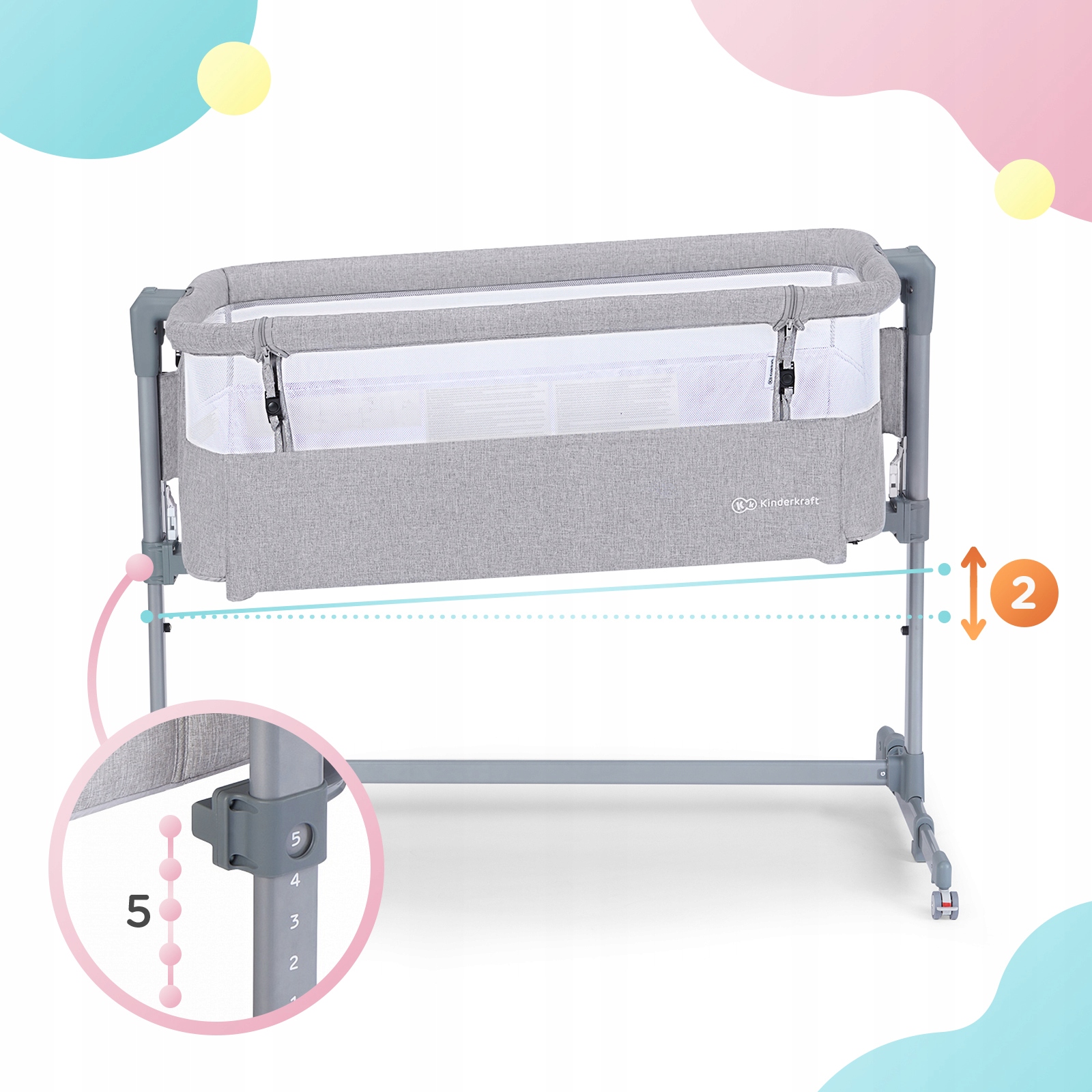 - діапазон регулювання від підлоги до матраца батьків: 49,5-61,5 см,
