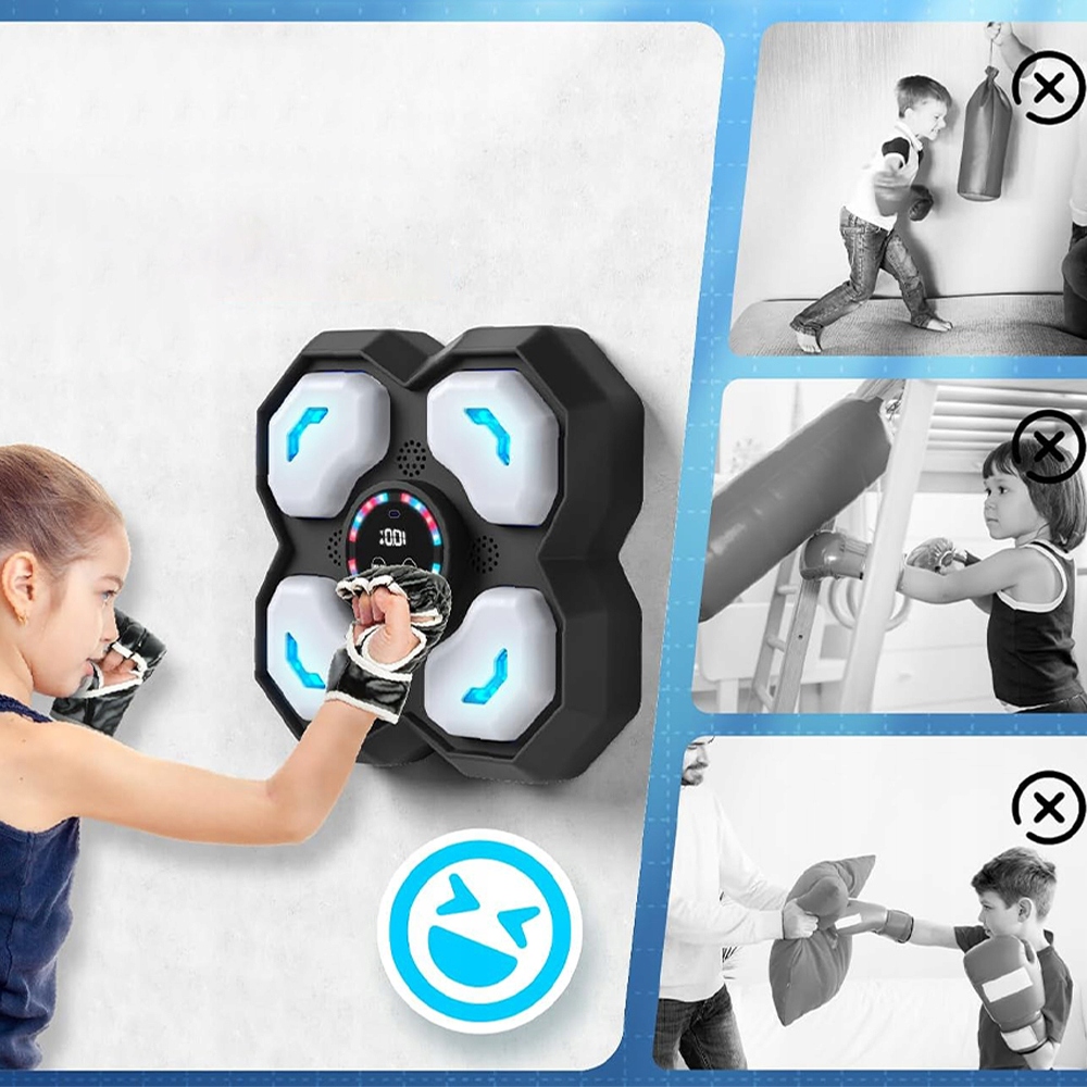 Музичний боксерський тренажер оснащено музикою, яка дозволяє вам повністю брати участь у вправах під час тренування. Він також підтримує з’єднання Bluetooth, тож діти можуть вибирати улюблену музику під час тренувань з боксу. Жвава музика, що супроводжує шоу, у поєднанні з ефектним освітленням робить дитячі боксерські бої ще більш захоплюючими.