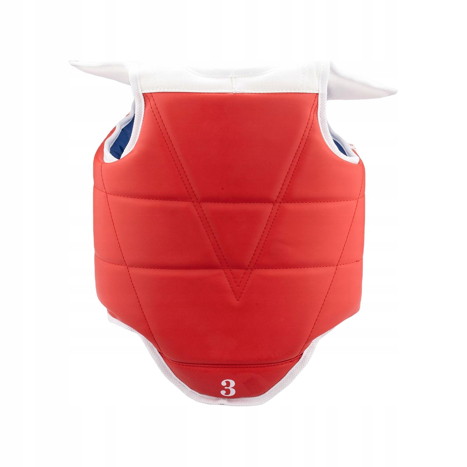 Опис: Міцний матеріал: протектор для нагрудників карате виготовлено з поліуретанової шкіри, має міцну прошивку та делікатно вирізаний край, що робить його більш зносостійким і міцним. Двосторонній: Дворісний дизайн дозволяє носити нагрудну кришку однією з двох сторін назовні, щоб розрізняти дві команди. Захист грудей: товсте ламінування забезпечує чудову амортизацію, захищаючи груди, живіт і ребра. Легко носити: ремінці на зав'язках на спині ідеально фіксують чохол на вашому тілі, зручно прилягати до тіла, легко одягати або знімати. Застосовний випадок: підходить для дорослих і дітей, ідеально підходить для людей, які займаються боксом, тхеквондо, карате, муай-тай, саньда, ММА, тренуваннями, змаганнями тощо.