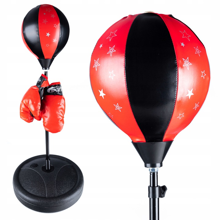 Він складається з пружинного боксерського мішка та рукавичок. Груша встановлена на сталевій стрілі. У комплекті рукавички універсального розміру, які підходять для дитячої руки. Рукавички мають амортизуючий шар на кулаці. Груша боксерська надута. У набір також входить набір гвинтів, шайб і елементів, необхідних для його складання.