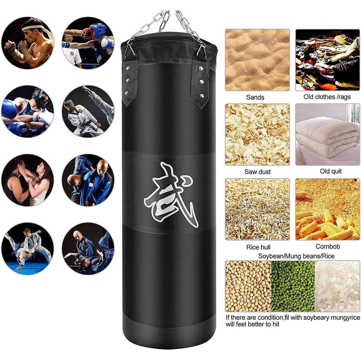 ✅Важкий боксерський мішок для дорослих, підлітків, дітей із боксерським мішком для використання в приміщенні/саду Незаповнений набір боксерських мішків із боксерськими рукавичками, бинтами, ланцюгом, стельовим гаком для ММА, кікбоксингу, муай-тай, карате, тхеквондо, 武 - кунг-фу (чорний)