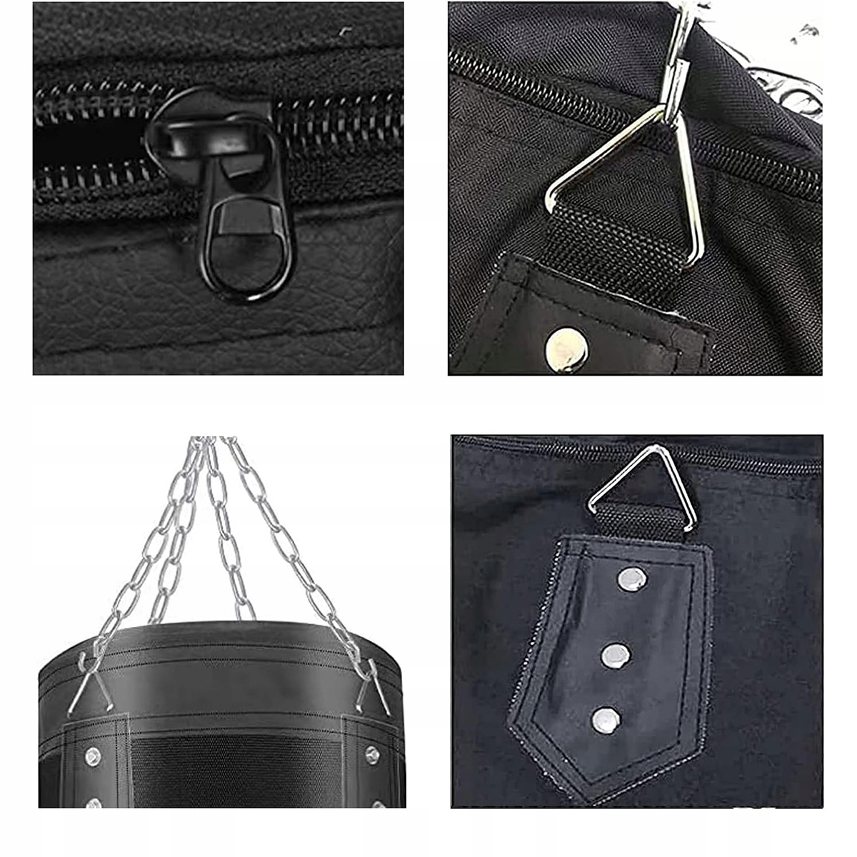 Для кращого захисту, боксу та ударів ногами до комплекту входять боксерські рукавички, бинти для рук, вішалка для сумки, 4-шаровий сталевий ланцюг, карабін, захист для зап’ястя, захист для рук і суглобів. Крім того, амортизуюча набивка з піни може витримати найсильніші удари вдома чи в спортзалі та запобігти травмам під час боксу та ударів ногами.