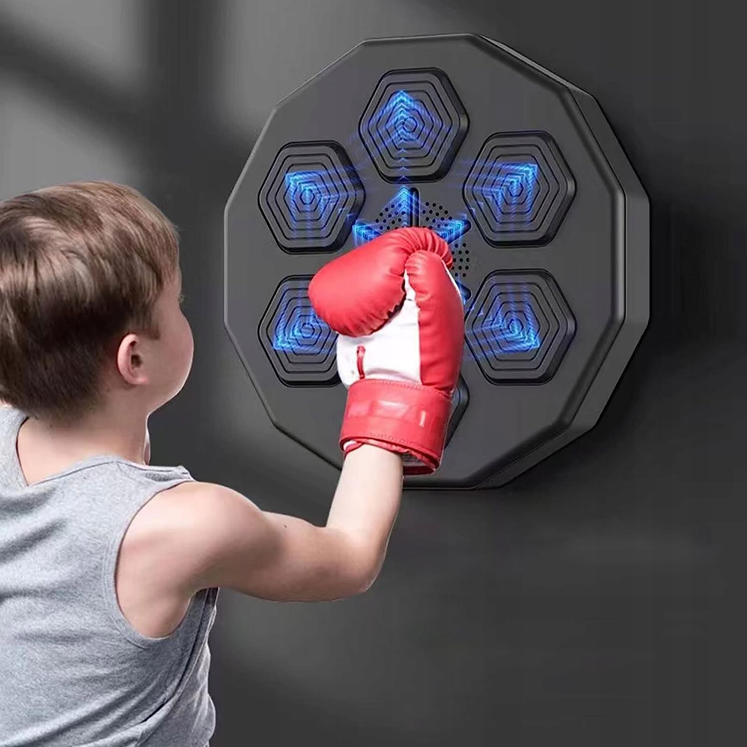 дисплей із підсвічуванням на стіні, положення боксу, дотримуйтеся ритму боксерських тренувань. Де горить світло, куди його перемагати, координація очей і рук, здатність до реакції.