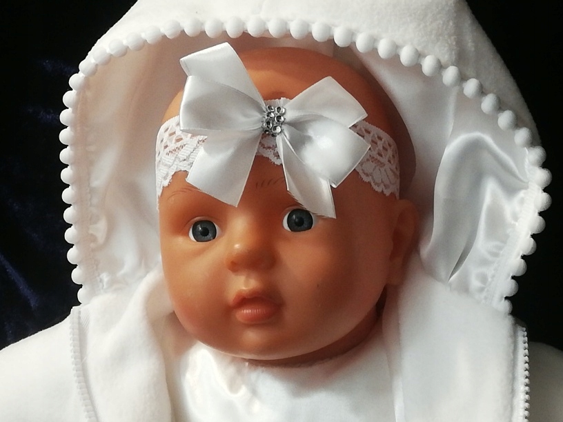 Прекрасна пов’язка на голову з м’якого ніжного мережива, прикрашеного бантом ручної роботи. Створює ідеальний комплект із сукнею та туфлями.