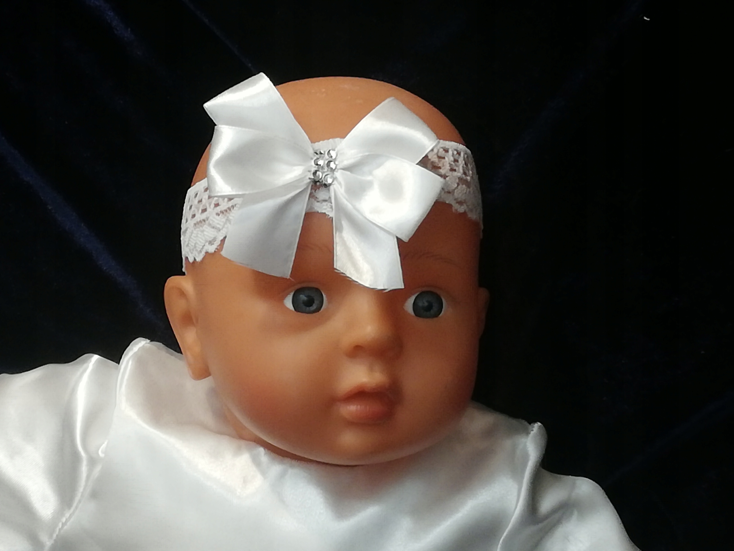 Прекрасна пов’язка на голову з м’якого ніжного мережива, прикрашеного бантом ручної роботи. Створює ідеальний комплект із сукнею та туфлями.