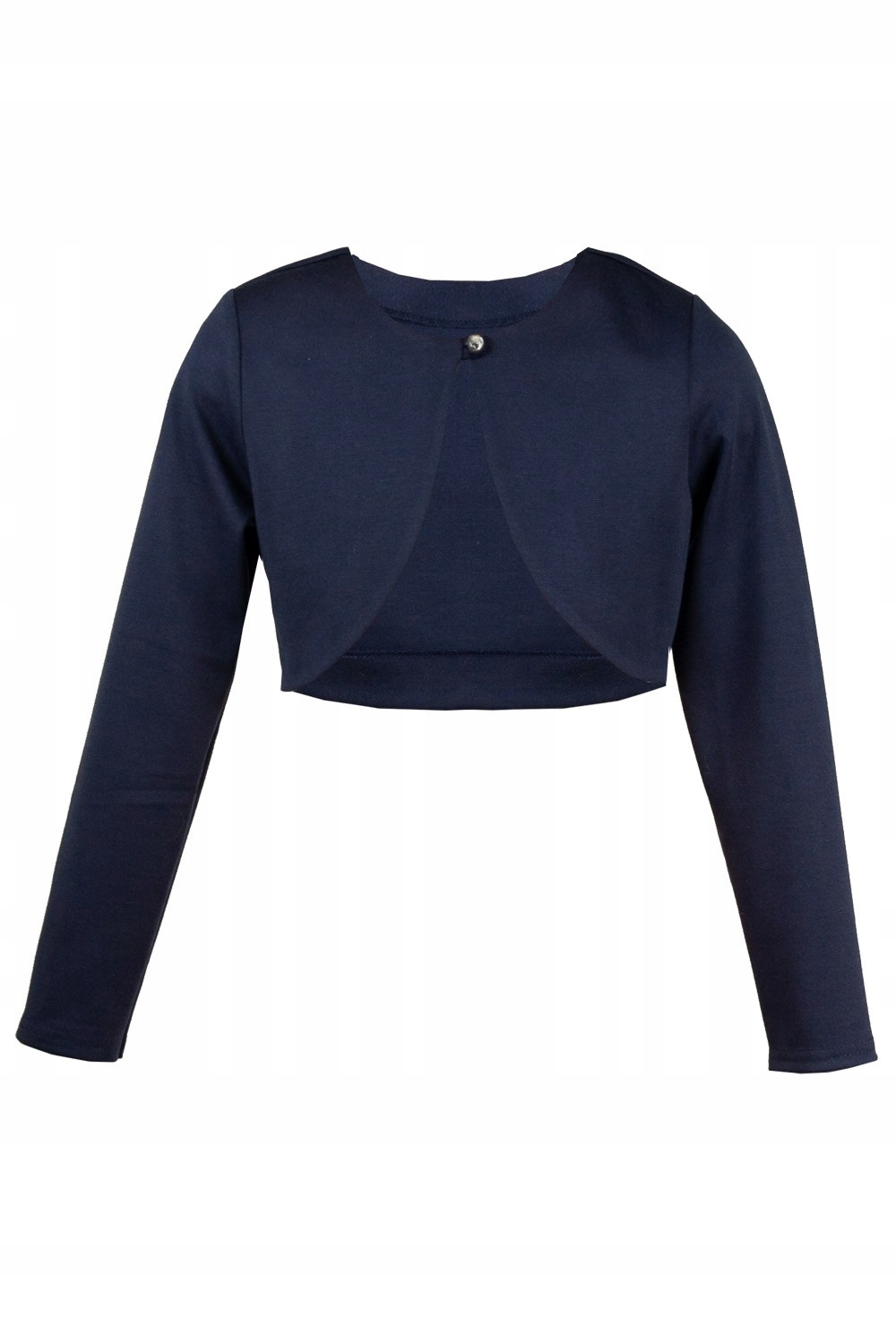 Болеро з щільної тканини пунто підійде до сукні чи блузки. Застібається спереду на гудзик. Коротший виріз не закриває сукню. Ідеально підходить для холодних днів.