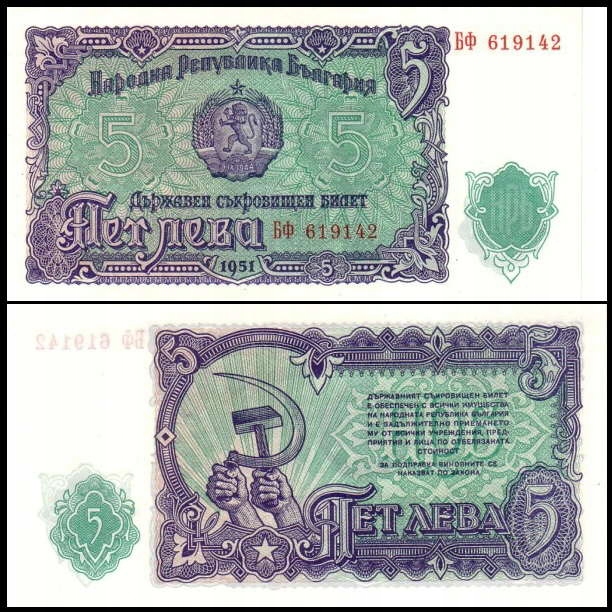 БОЛГАРІЯ, 5 ЛІВОВИХ 1951 Pick 82a