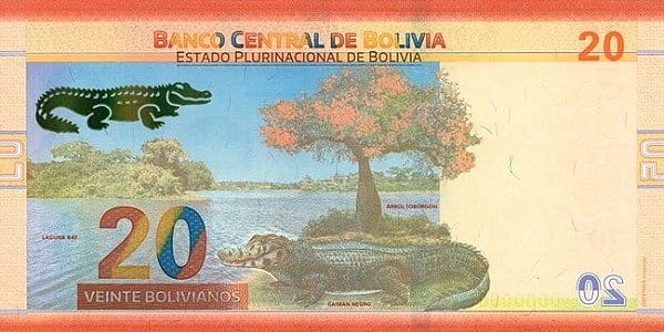 Болівія 20 Боліванос Кайман Чорний 2018 р. P-249A
