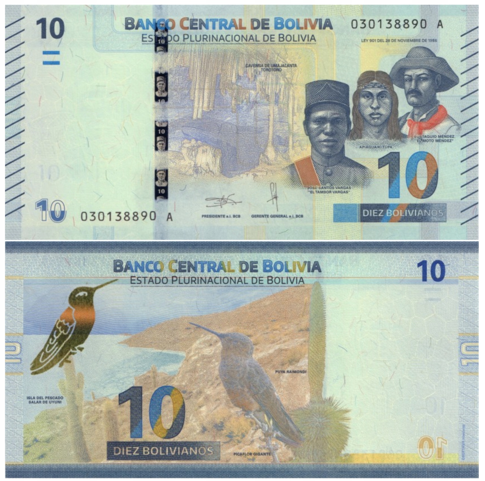БОЛІВІЯ 10 BOLIVIANOS 2018 P-W248 UNC, серійний номер банкноти може відрізнятися від зображеного на фото