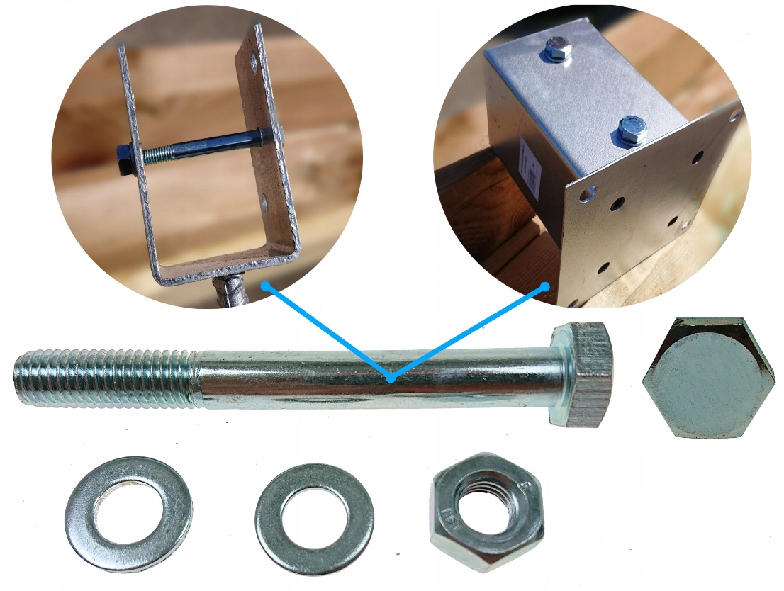 В комплект входять дві шайби, завдяки цьому при закручуванні гайки ми не пошкоджуємо оцинковану поверхню основи, яка потім піддається корозії і покривається коричневим нальотом, через що так важливо використовувати шайбу переважно під гайку, яка при закручуванні обертається і «травмує» основу
