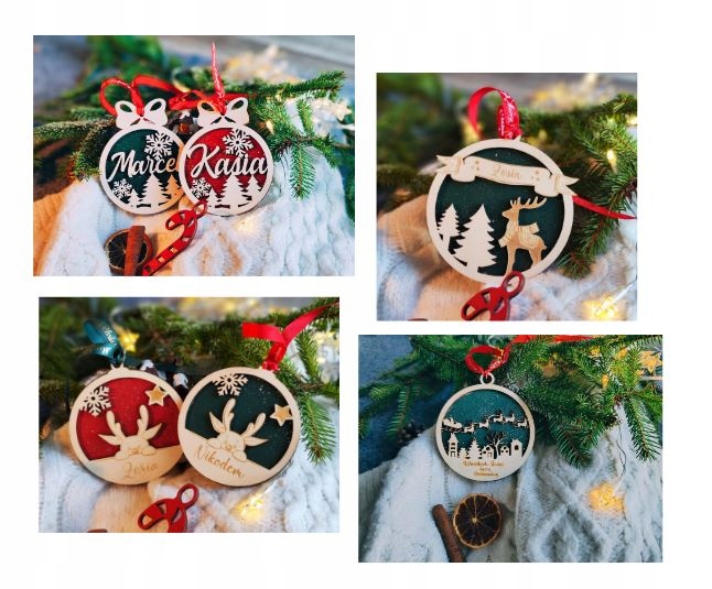 Bombka drewniana na choinkę z IMIENIEM personalizowana prezent BROKAT 10cm