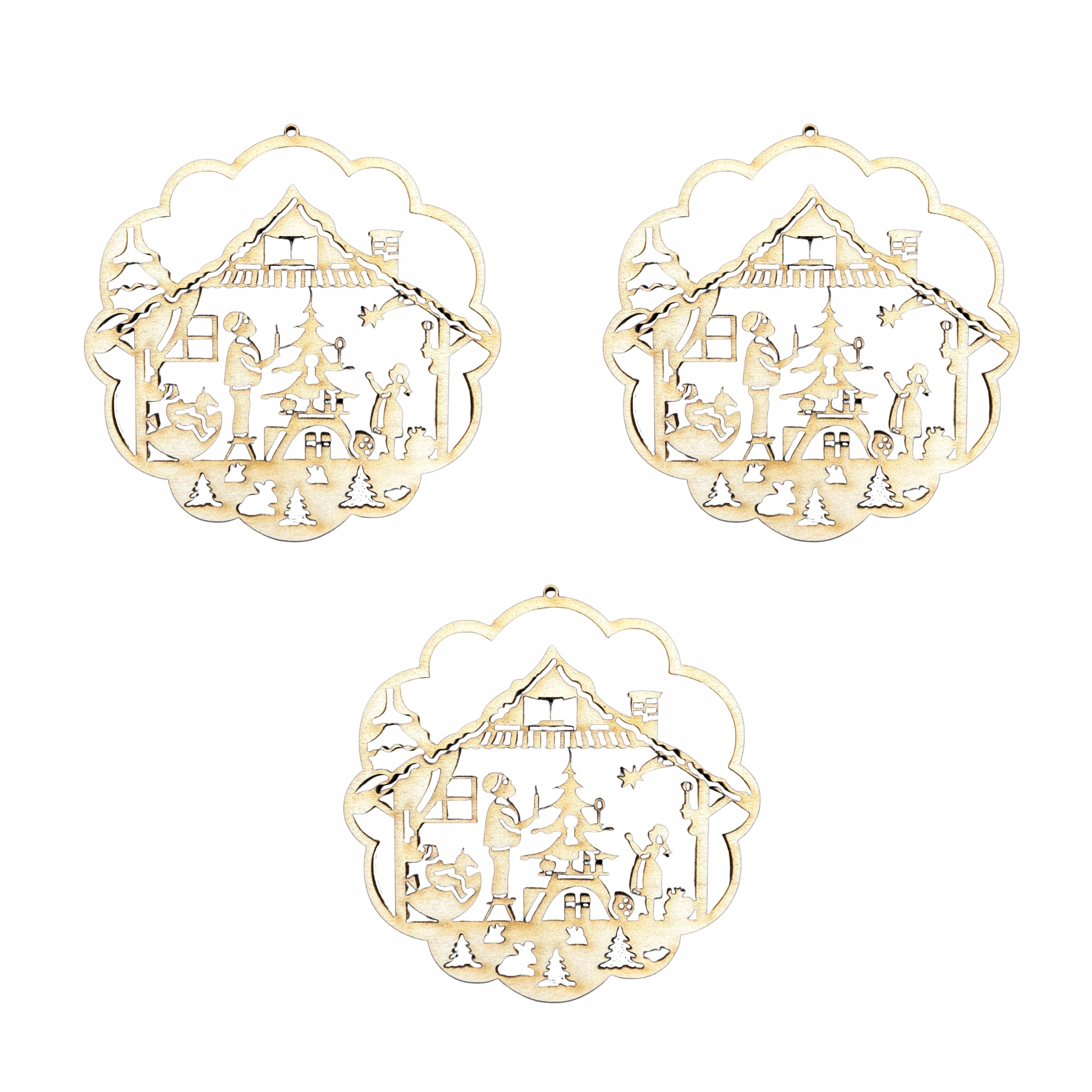 BOMBKA ZAWIESZKA NA ŚWIĘTA DOM DOMEK DREWNIANIA NA CHOINKĘ ZE SKLEJKI