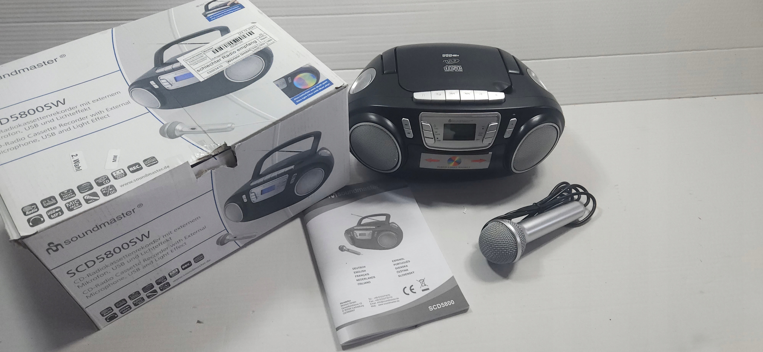 Оплачивая «Бомбокс Soundmaster SCD5800SW Karaoke Disco Light», вы можете быть уверены, что данный товар из каталога «Оборудование для караоке» будет доставлен из Польши и проверен на целостность. В цене товара, указанной на сайте, учтена доставка из Польши. Внимание!!! Товары для Евросоюза, согласно законодательству стран Евросоюза, могут отличаться упаковкой или наполнением.