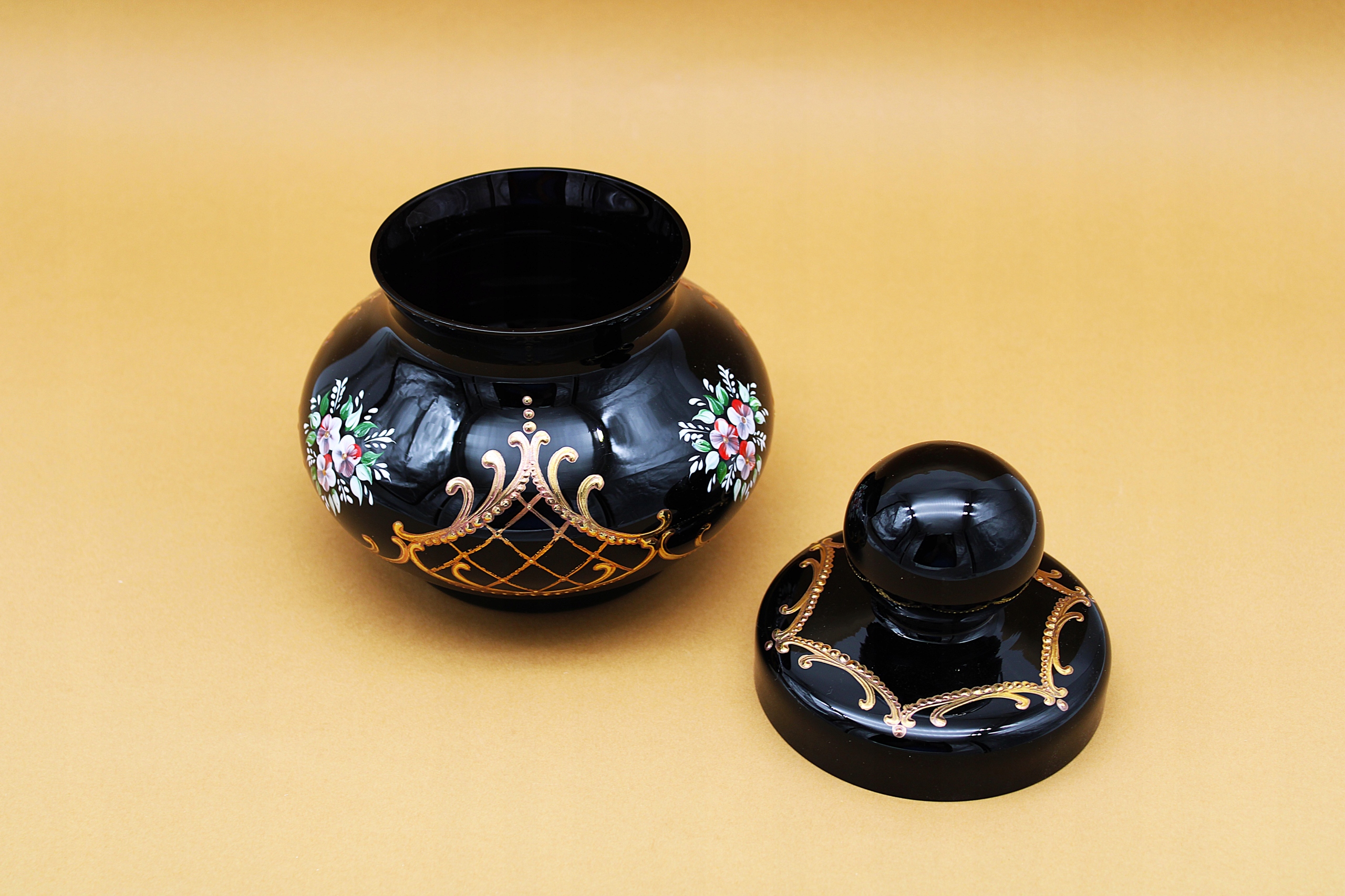 BOMBONIERA RĘCZNIE MALOWANE - ZŁOCONA W RELIEF