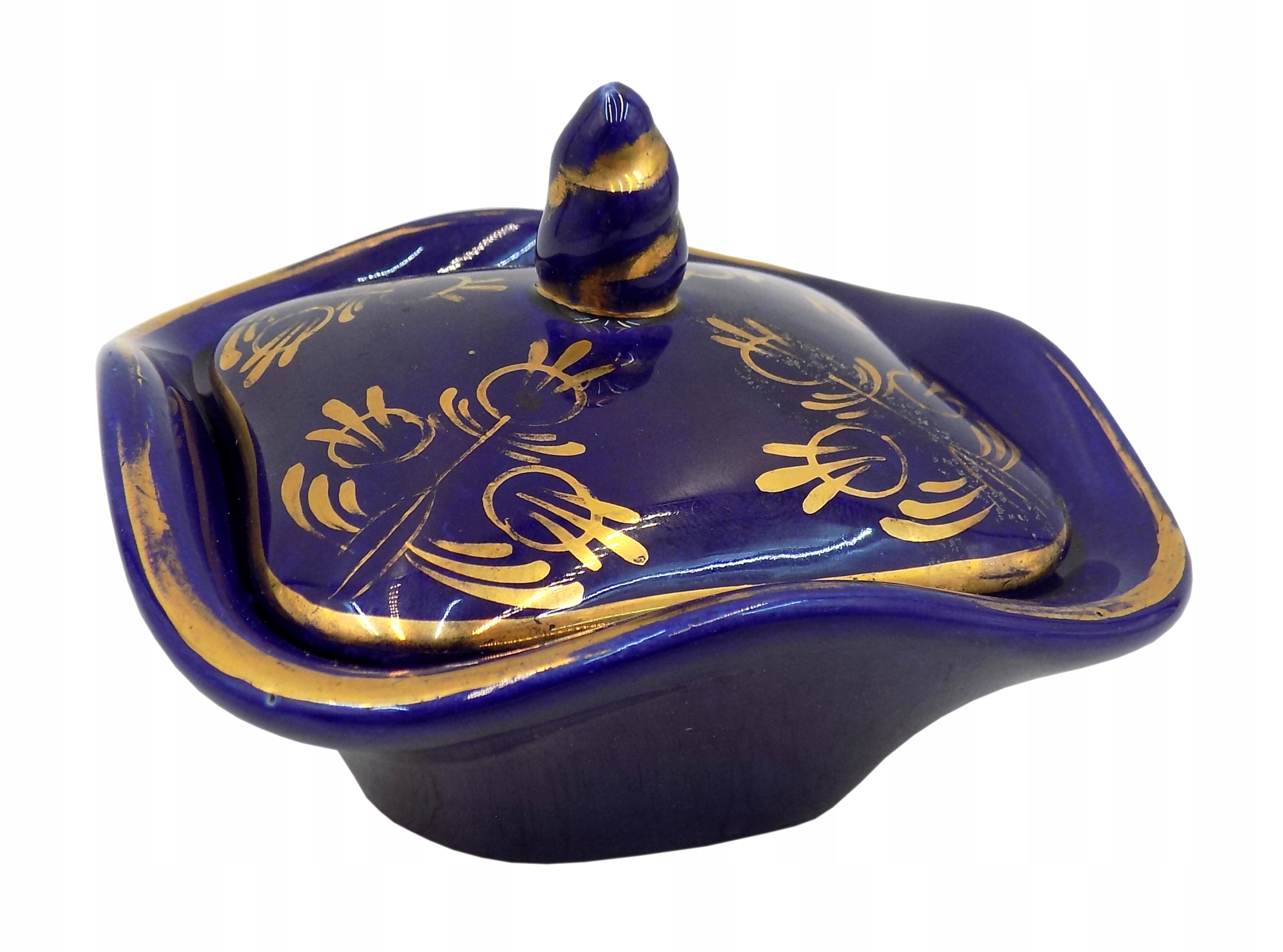Фаянсово-кобальтова шоколадна коробка з Влоцлавека 1950-1960-х років. Підписано. Модель 344, затверджена в 1959 році. Дизайн Яна Совінського. Розміри; висота 8 х 11,5 см.