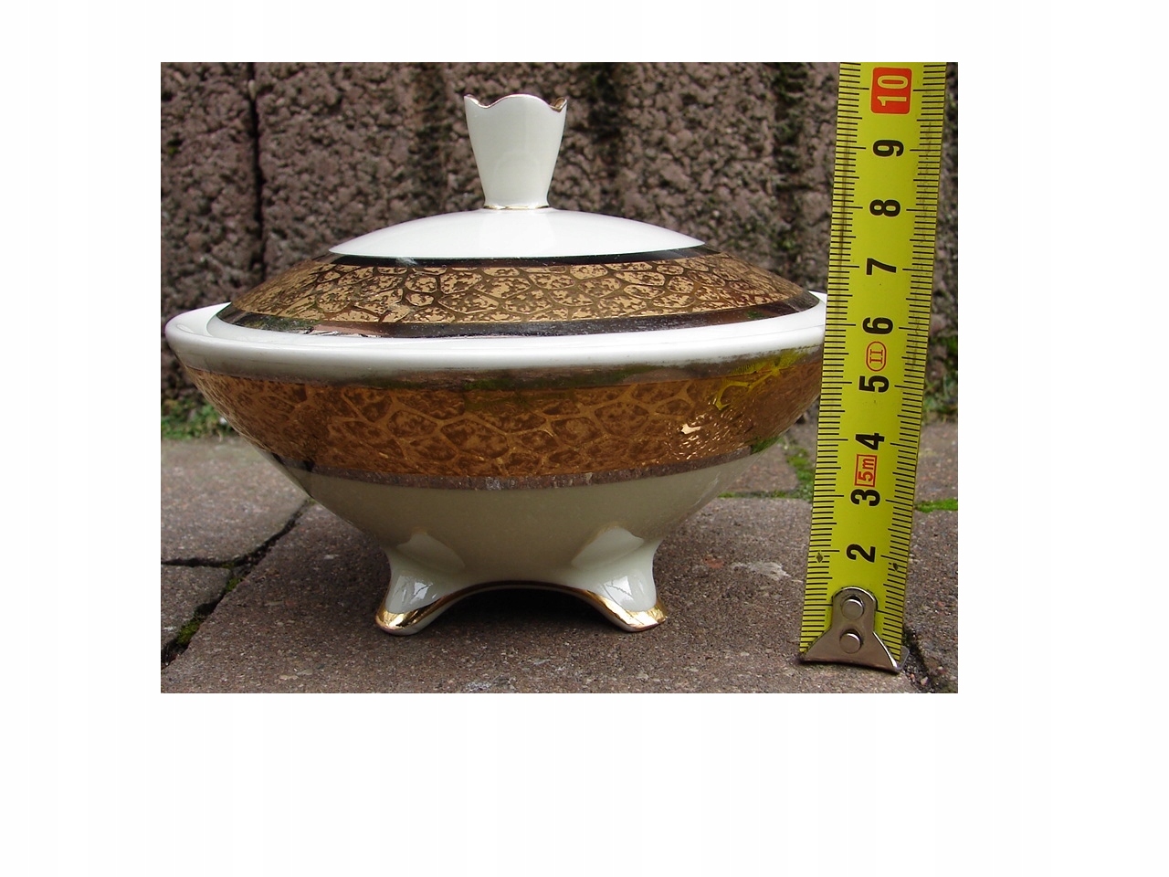 Бомбоньєрка на трьох лапках, порцеляна кольору екрю, старе золото