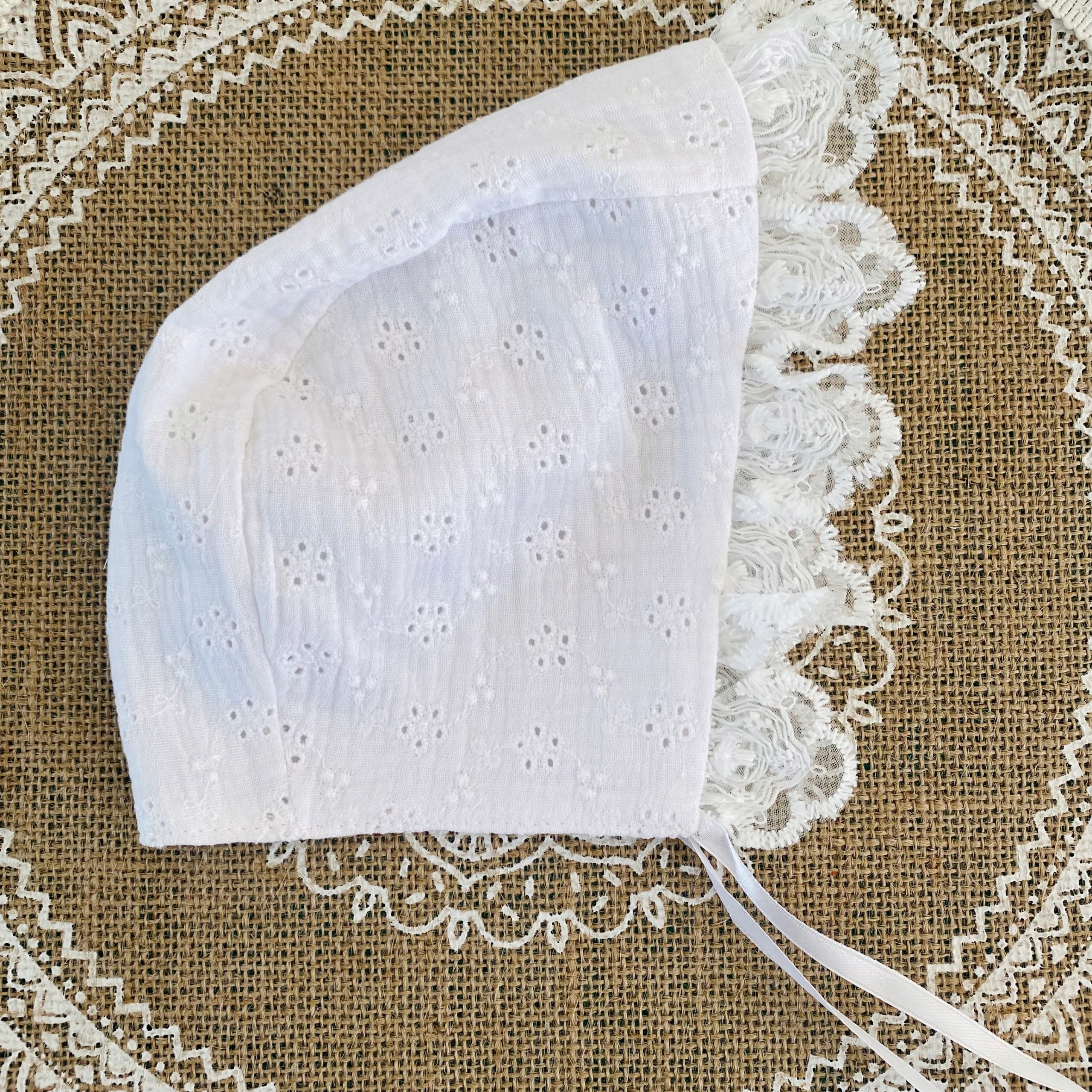 Бонетка шапочка вишита з мереживом біла, 6 - 9 мк