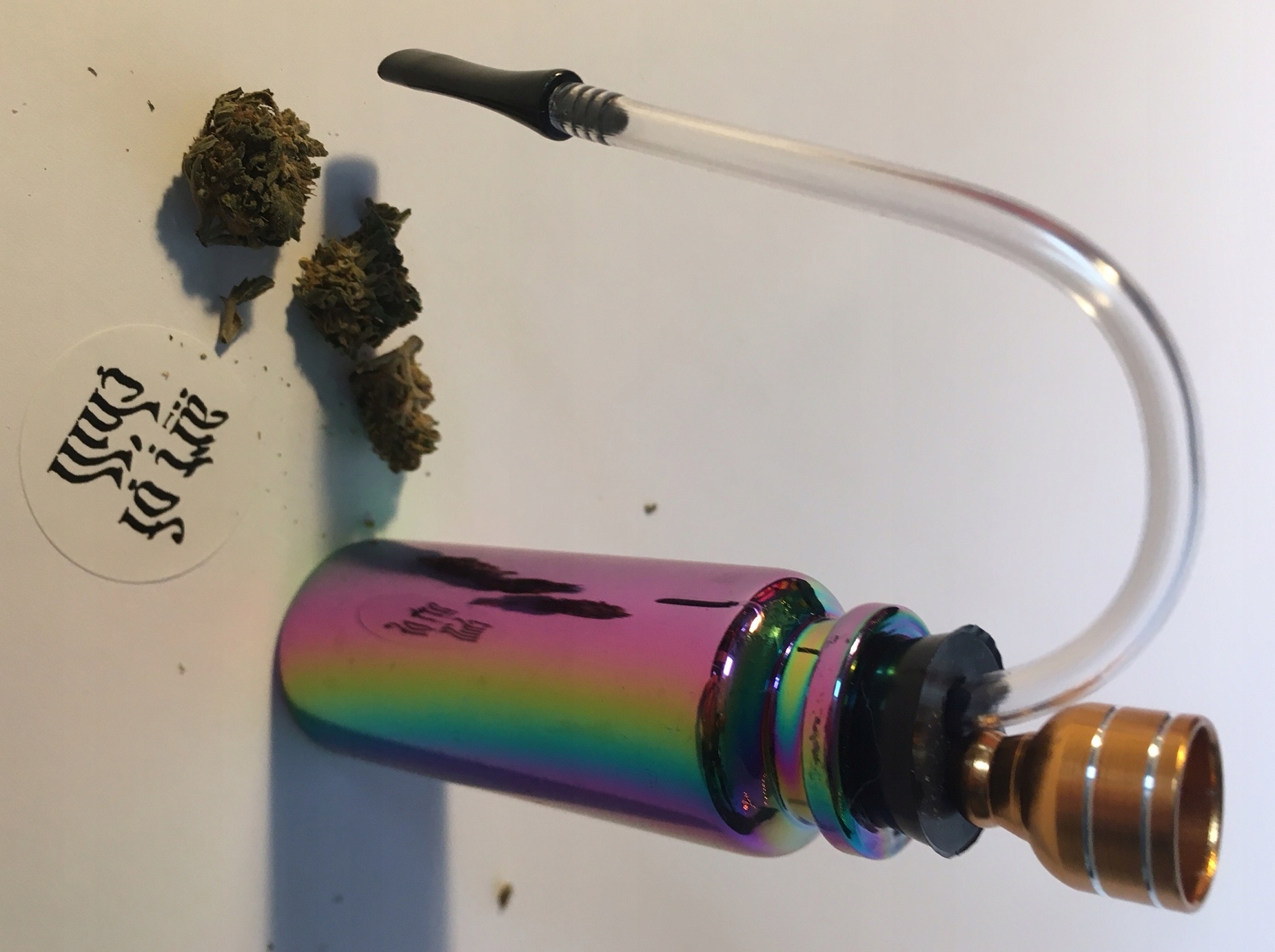 Корисний продукт для любителів диму, відфільтрованого водою. Цей міні-бонг для водопровідної труби працює точно так само, як стандартний розмір. Ми кладемо нашу улюблену траву в нашу миску, наливаємо воду в ємність - приблизно на 40% від її місткості