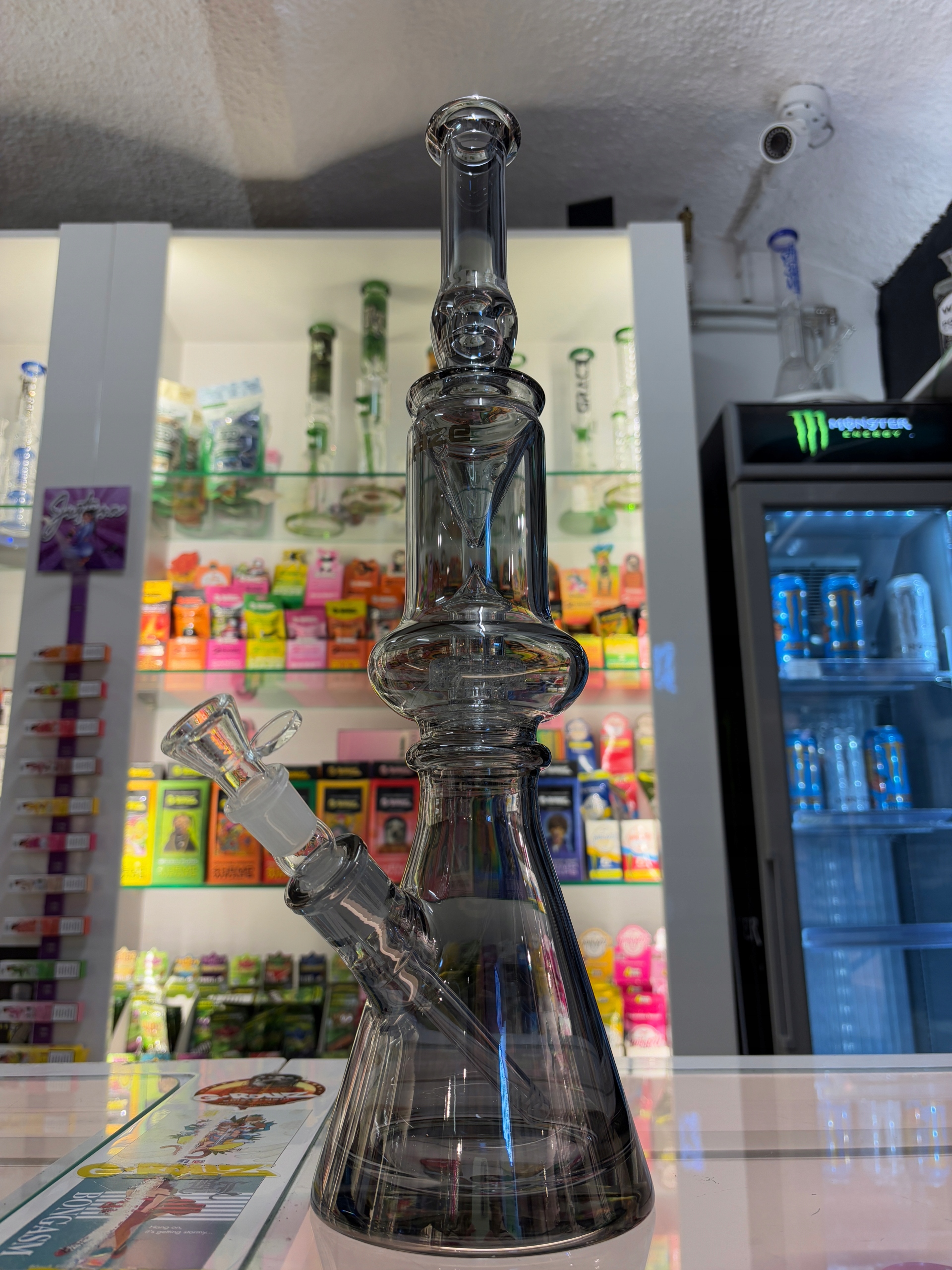Блейз-вежа-незвичайна елегантна водопровідна труба спалахне скло з блискучим металевим зовнішнім виглядом, отриманою завдяки сріблясто-сірої оболонки іонів. Крім того, він містить різні елементи, які створюють справжні вихори у водній камері і гарантують божевільні, сильні, але не дряпані.