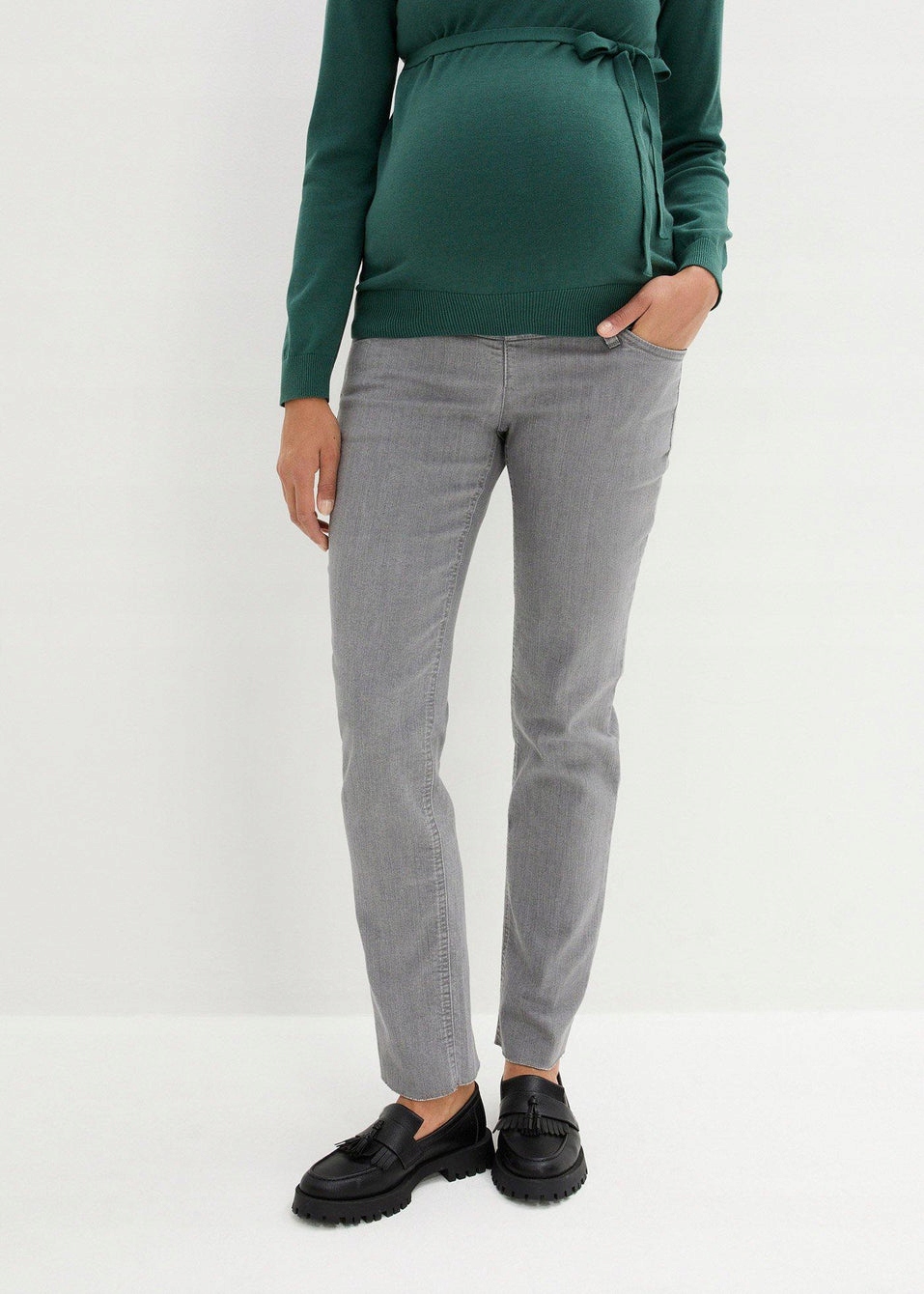 Bonprix 40 Сірі штани для вагітності з гнучким прямим ременем