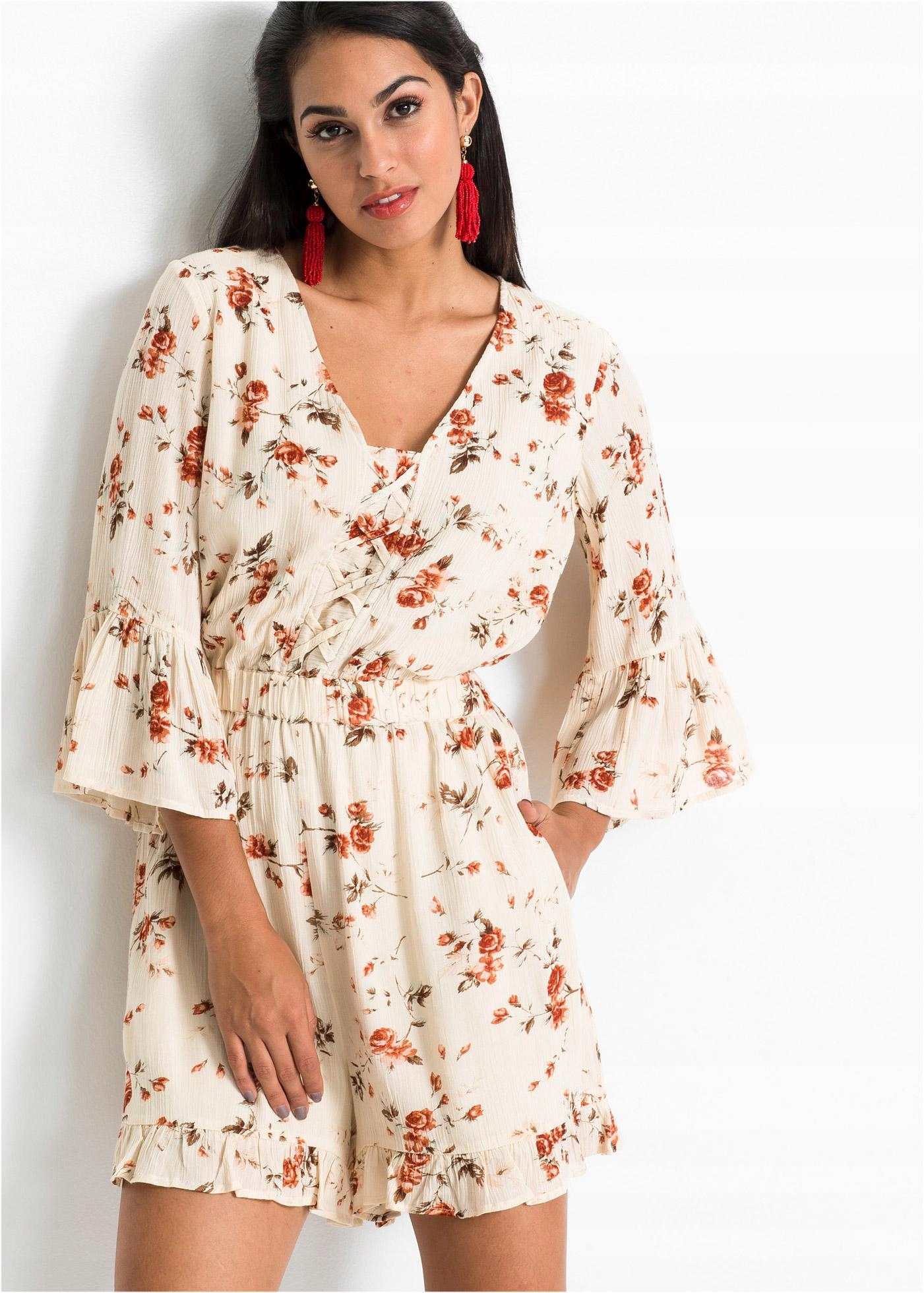 BONPRIX _UL FW3 БЕЖЕВИЙ КОМБІНЕЗОН З КВІТАМИ _/ 40