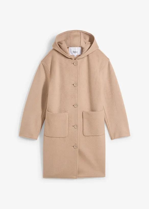Bonprix пальто жіноче бежевого кольору класичне з капюшоном