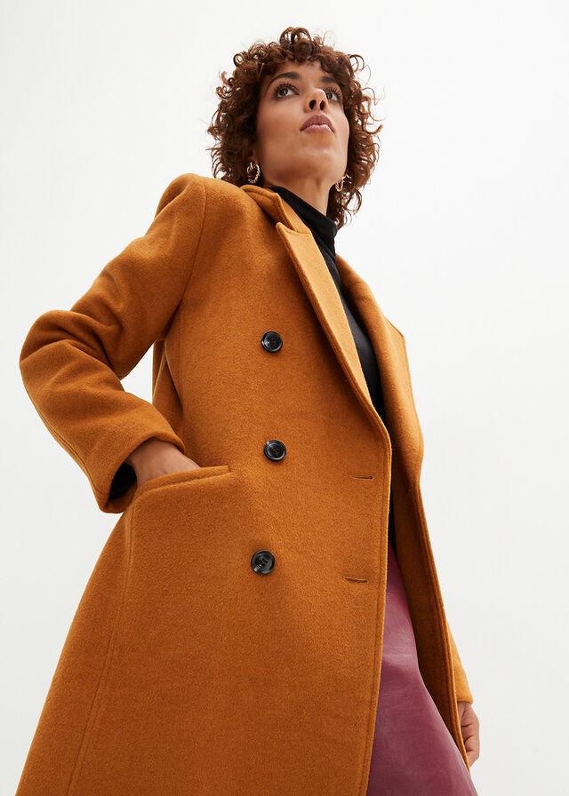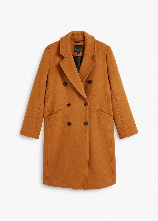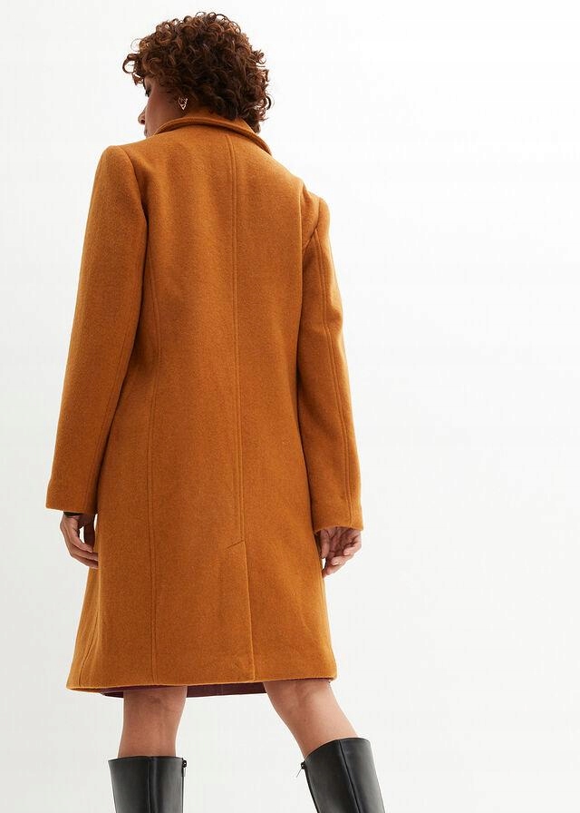 Bonprix płaszcz damski brązowy klasyczny bez kaptura