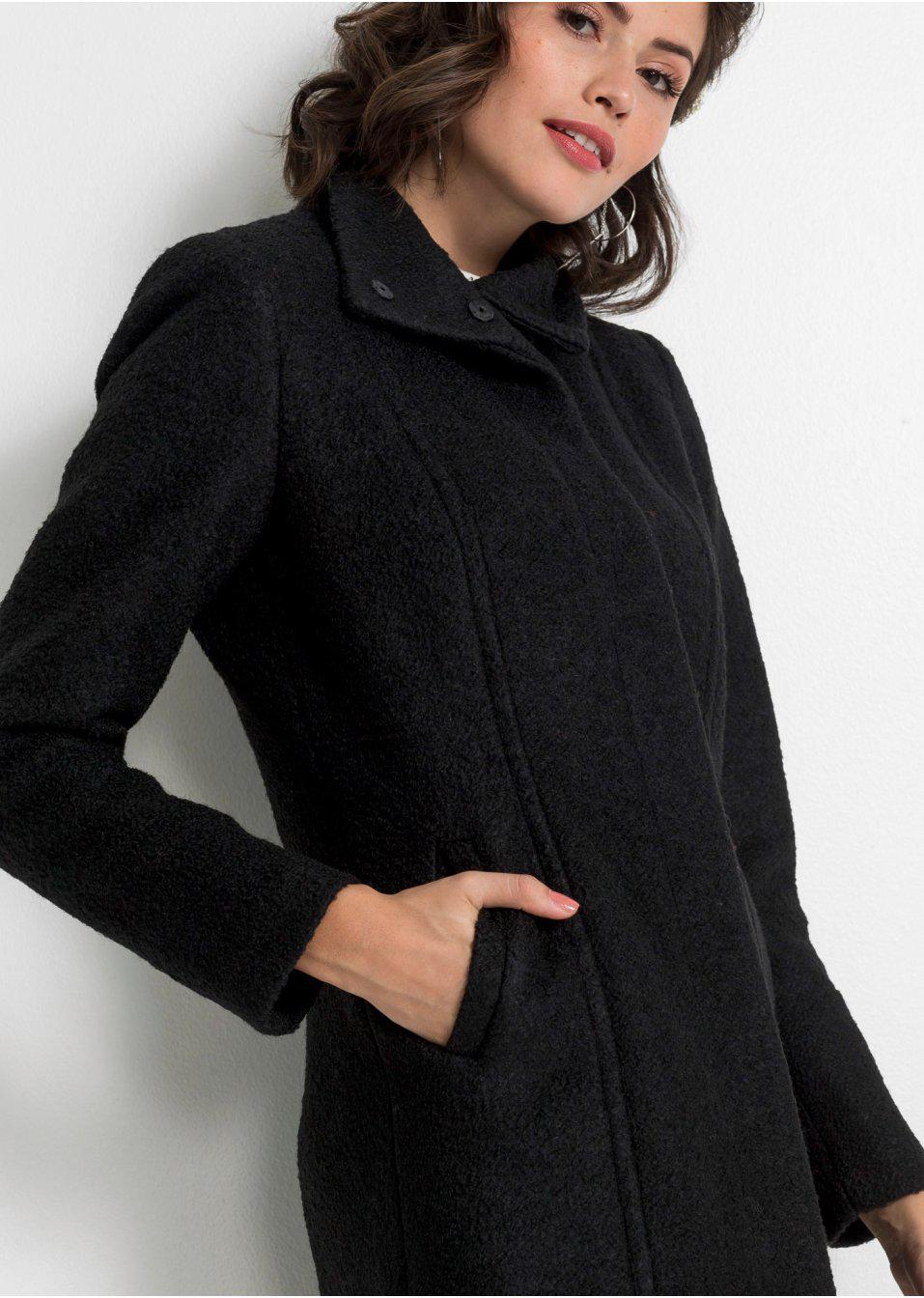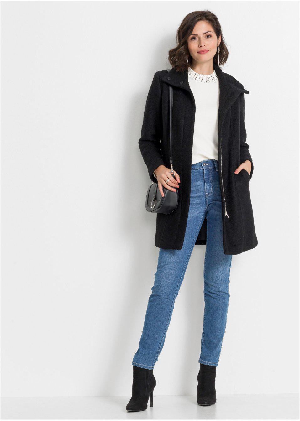 Bonprix płaszcz damski czarny klasyczny bez kaptura
