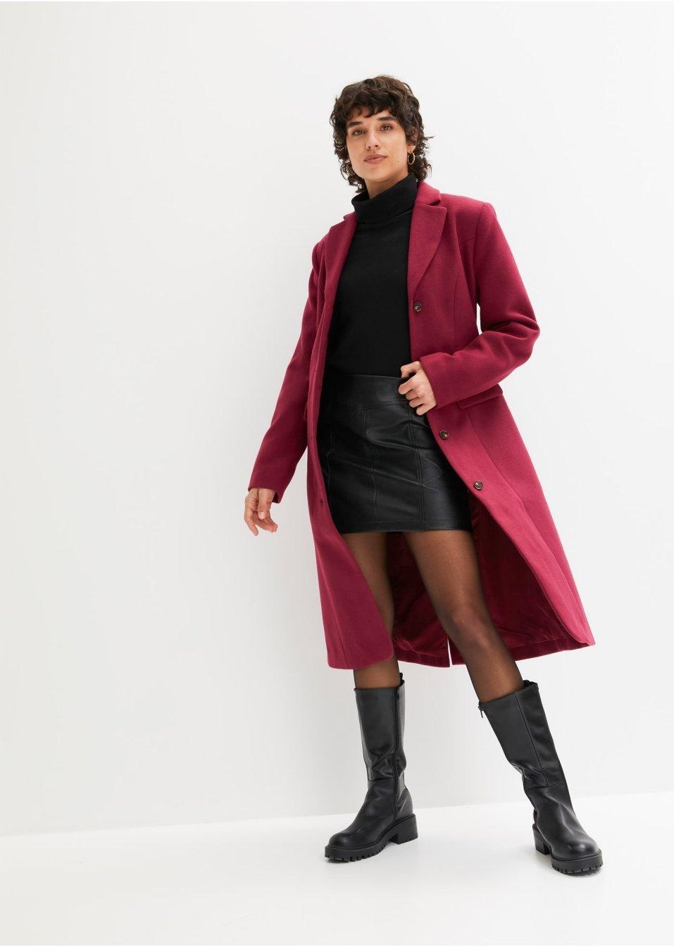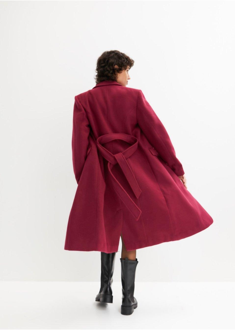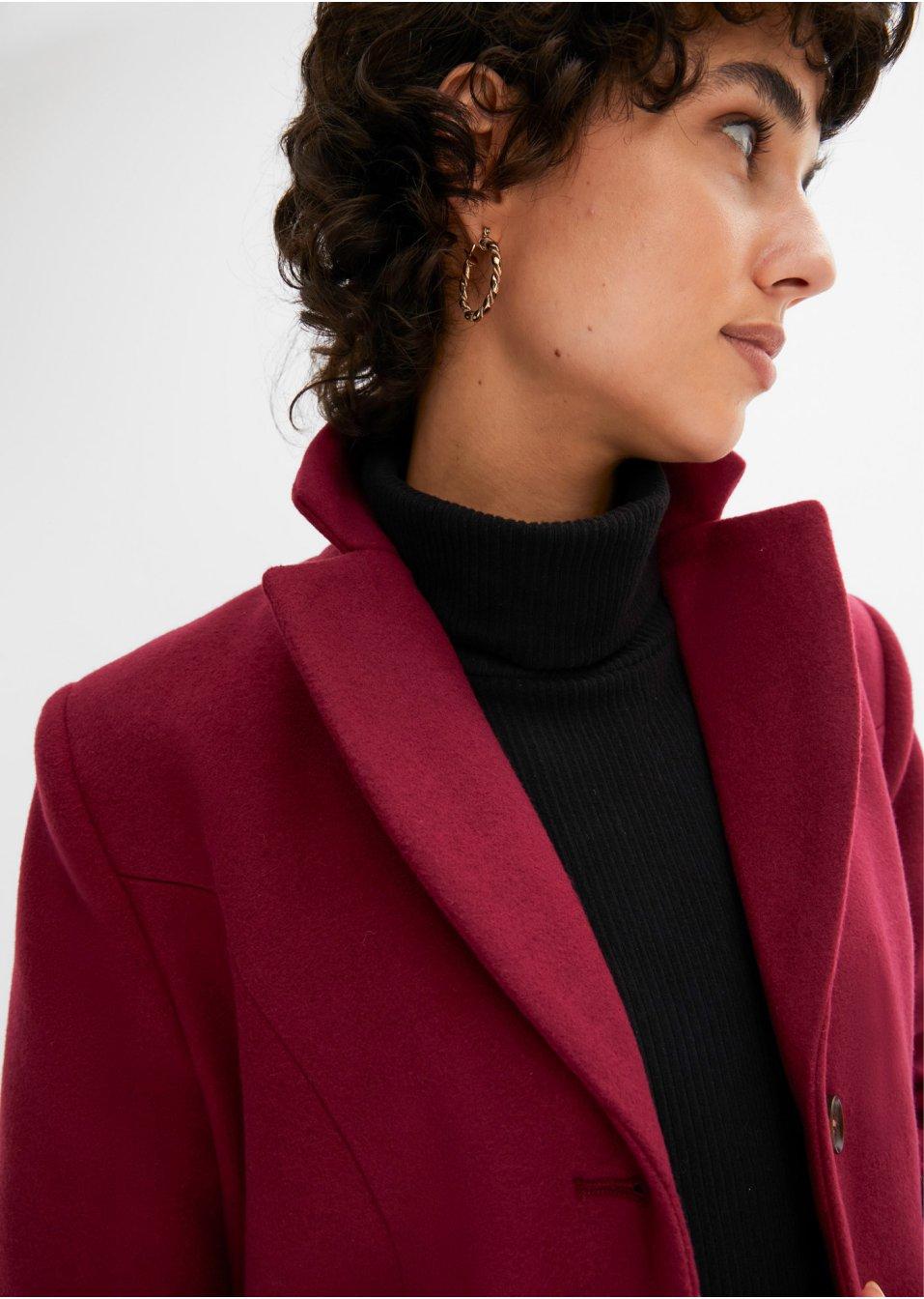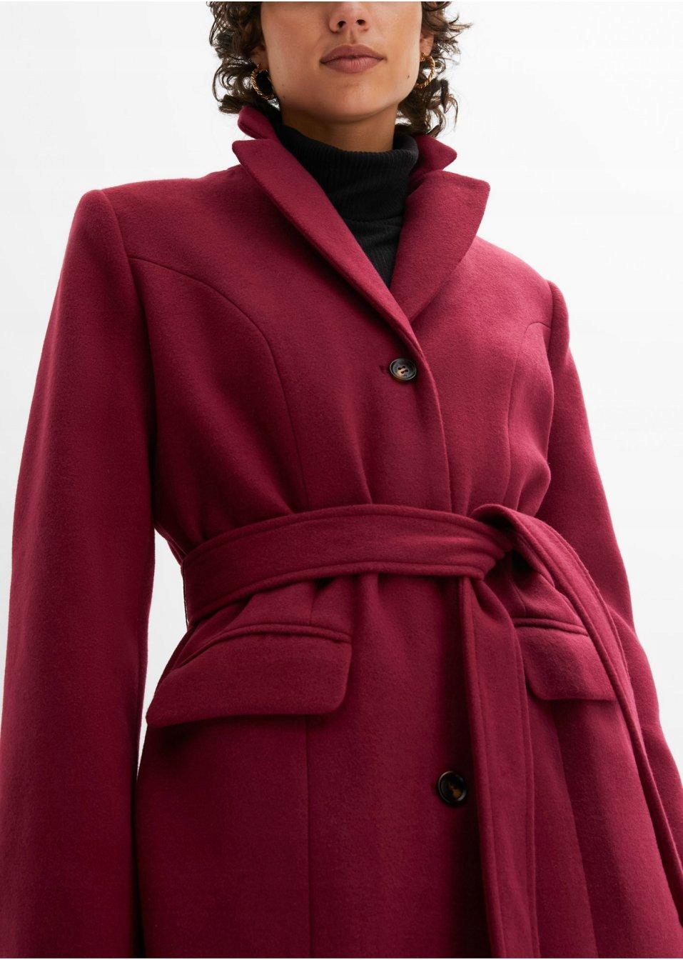 Bonprix płaszcz damski fioletowy klasyczny bez kaptura