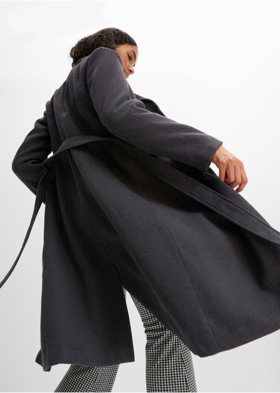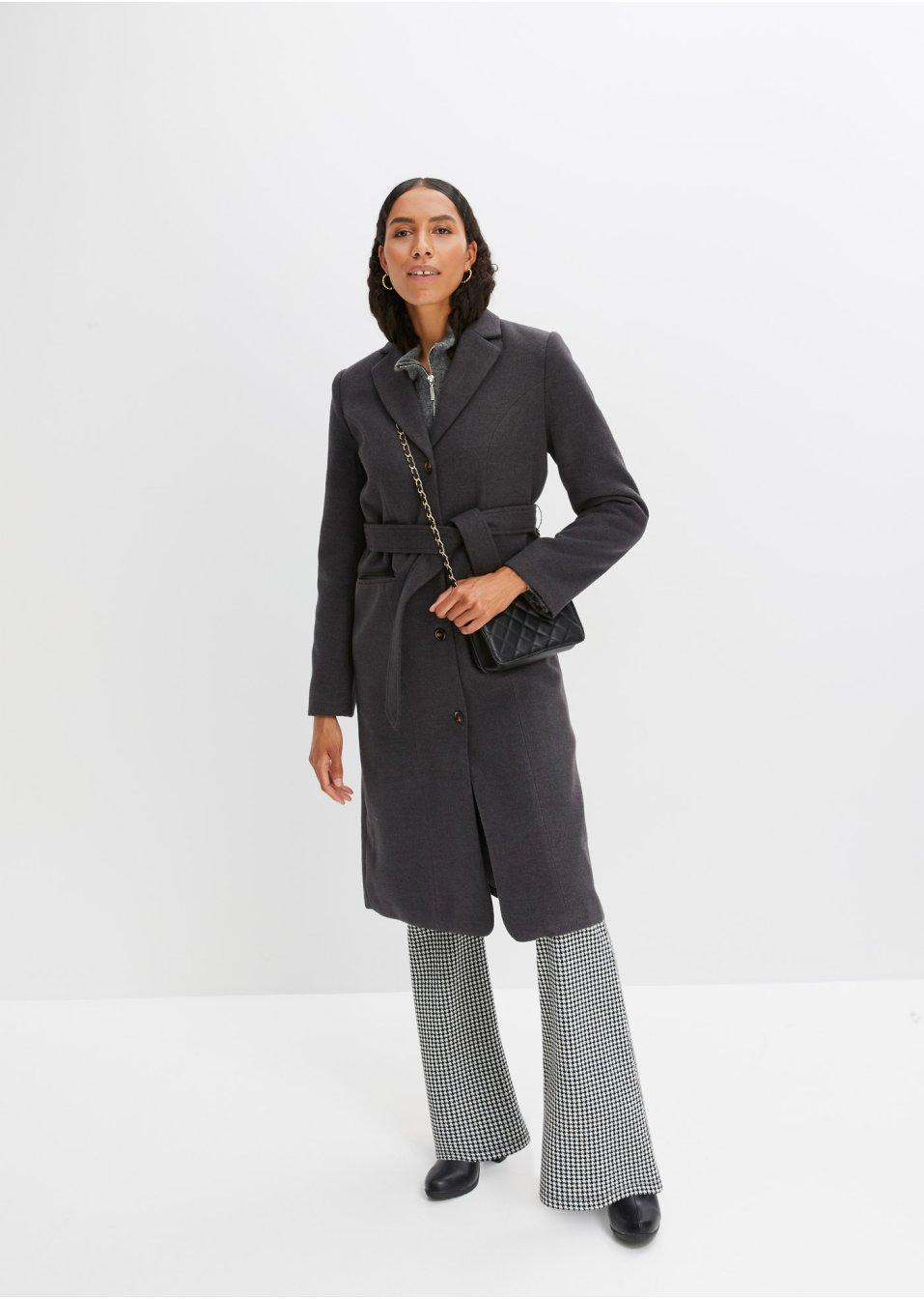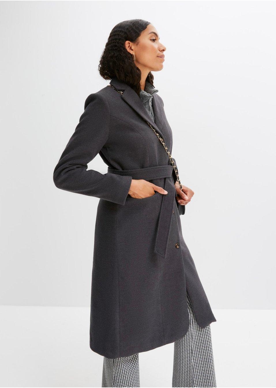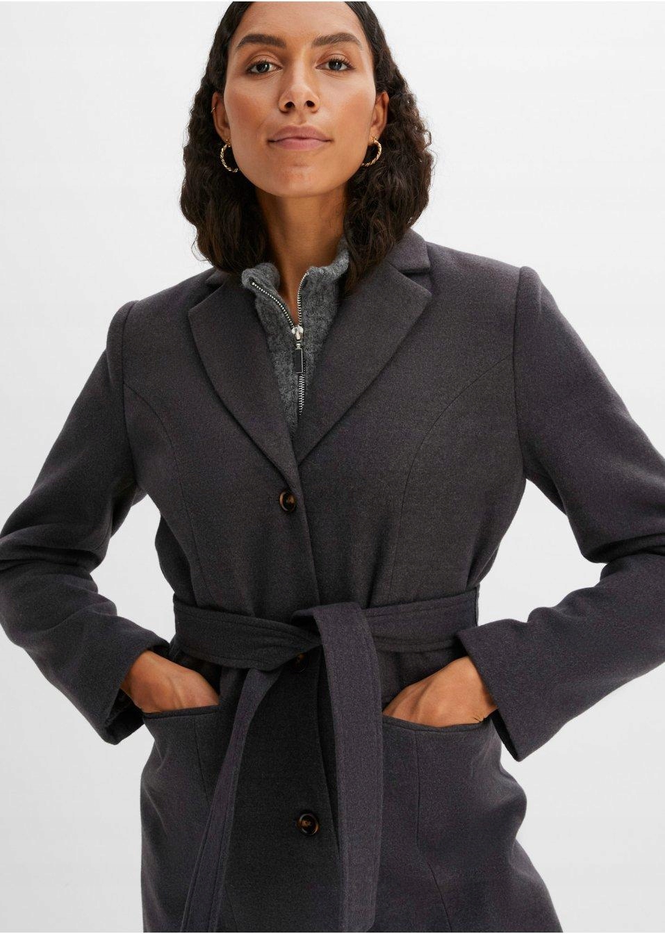 Bonprix płaszcz damski szary klasyczny bez kaptura