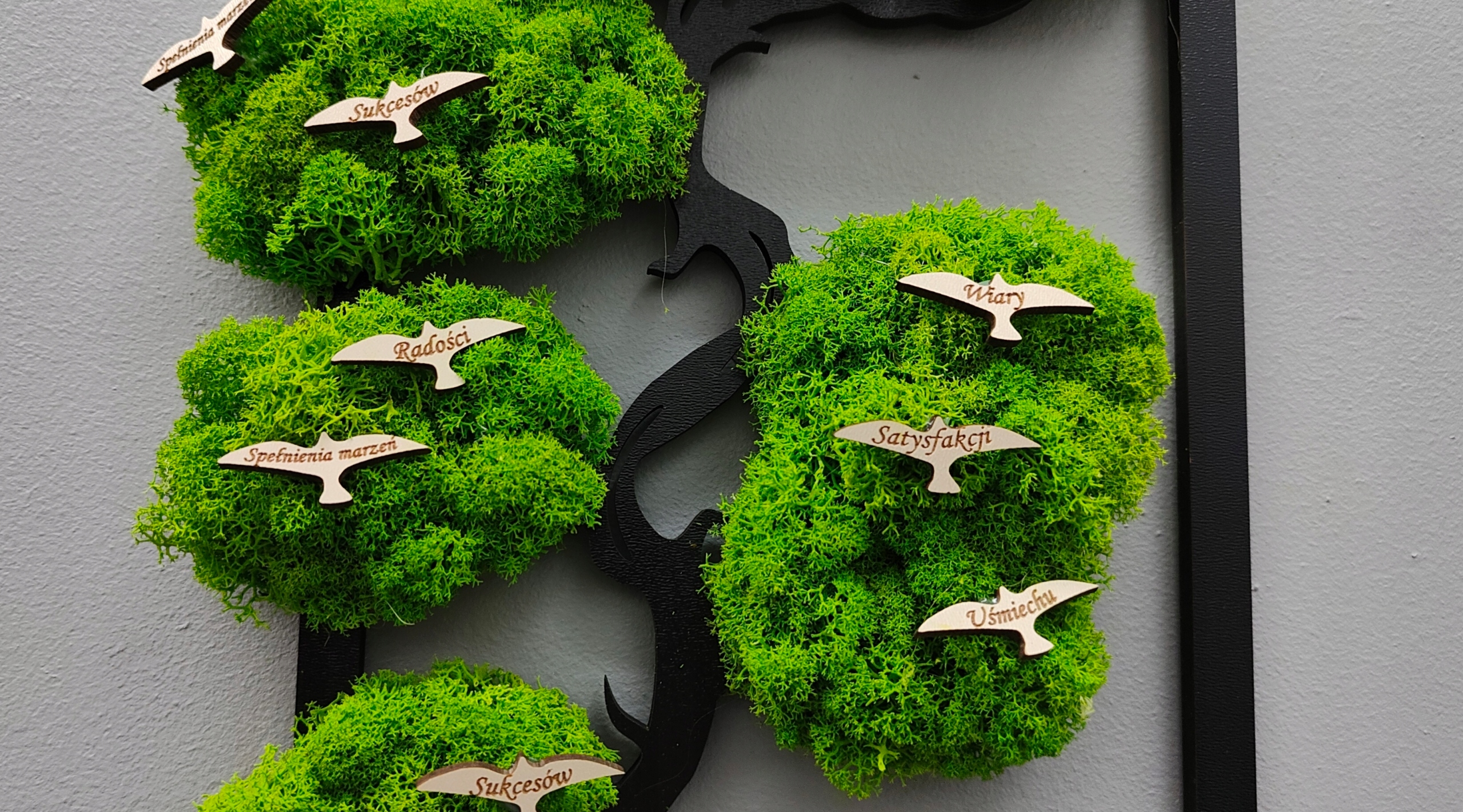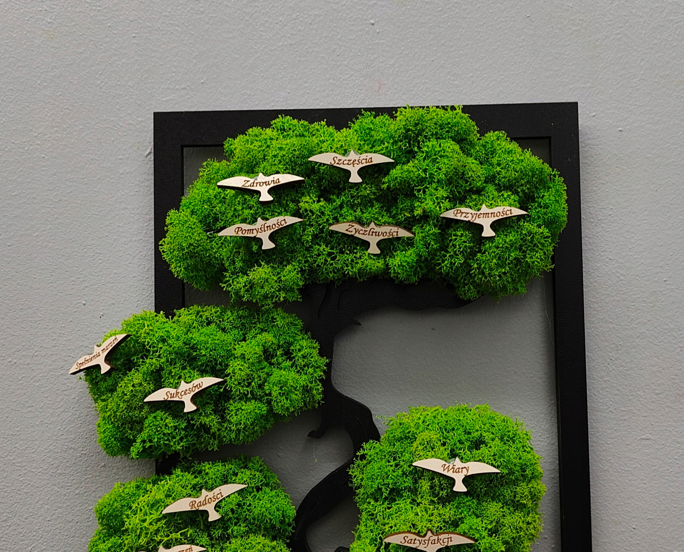 Дерево ідеально підходить як чудовий подарунок для бабусь і дідусів у своєму відпочинку. Ми можемо вільно змінити тексти у птахів. У птахів замість побажань ви можете розмістити імена онуків. Чудовий лишай - це повністю - без технічного обслуговування. Вам не потрібно його вирізати або посипати. Для життя йому потрібна лише волога з повітря, яку він бере сам. Може залишатися свіжим до 11 років.
