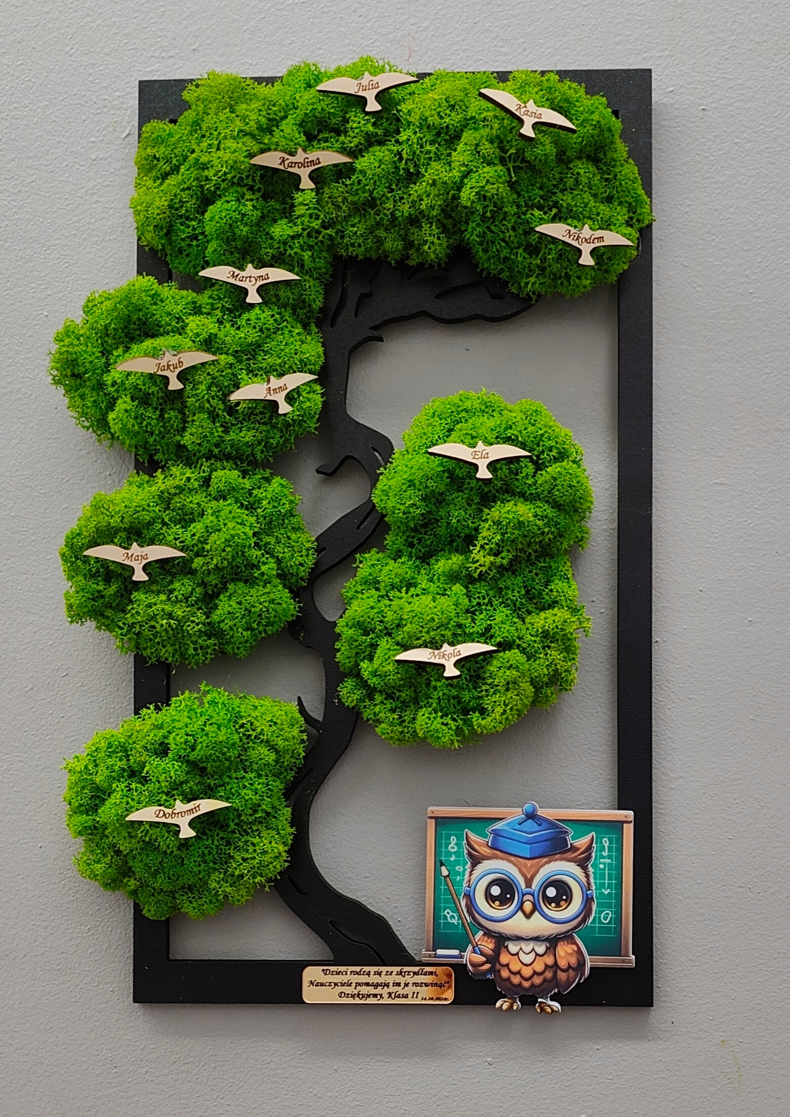 Бонсай дерево з мохом день вчителя кінець року птахи кольору сови